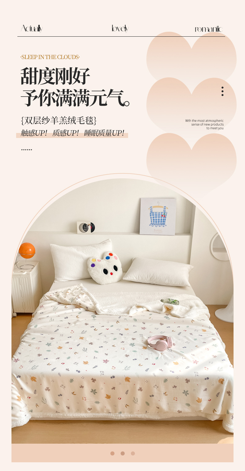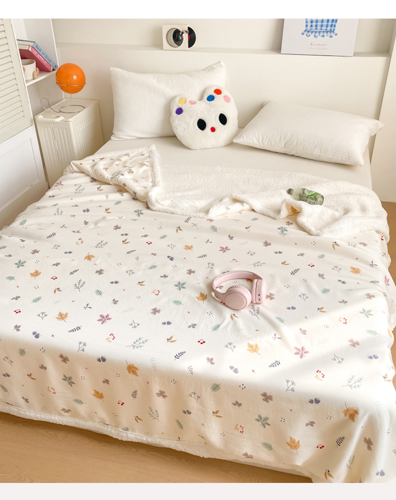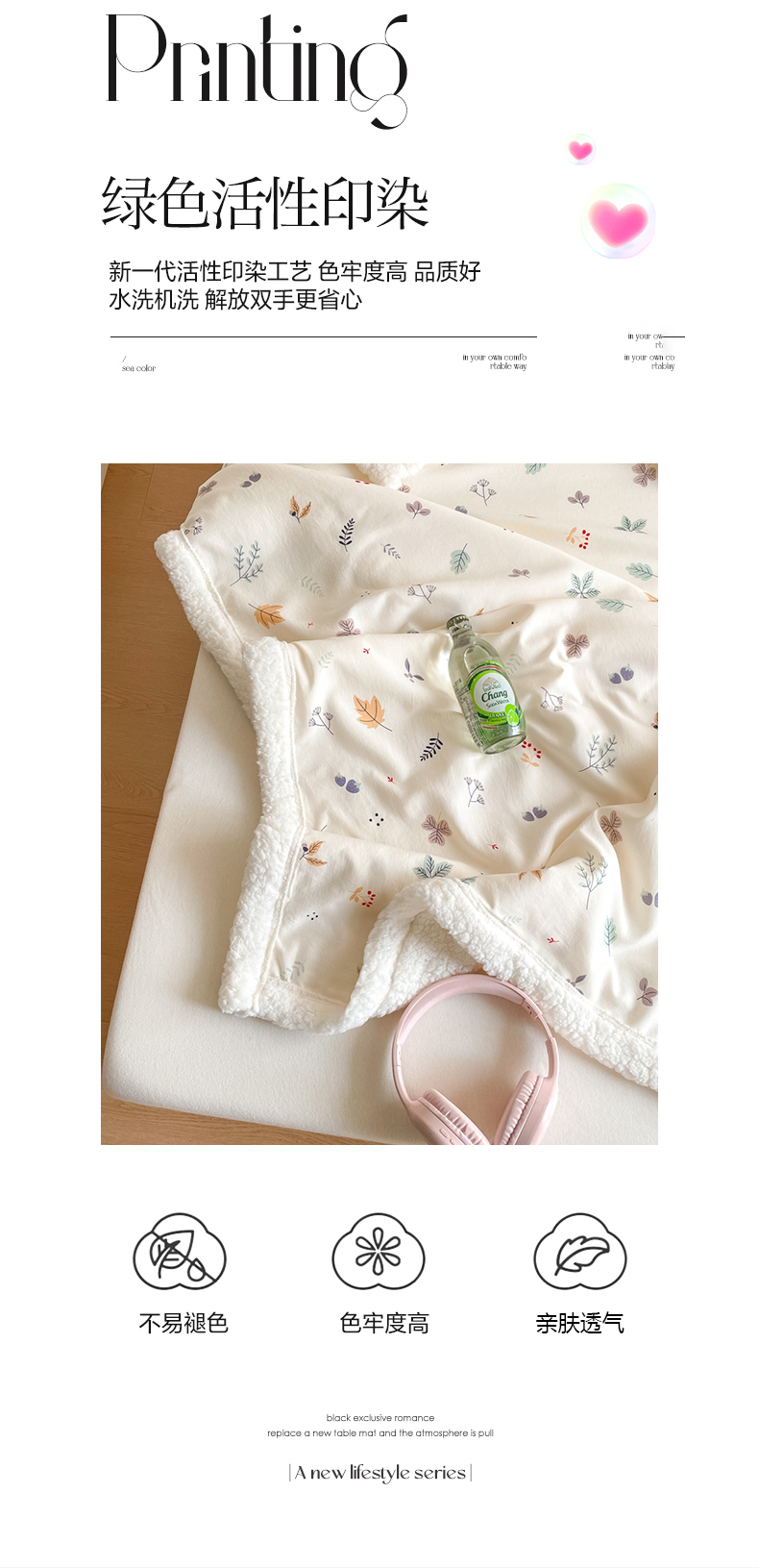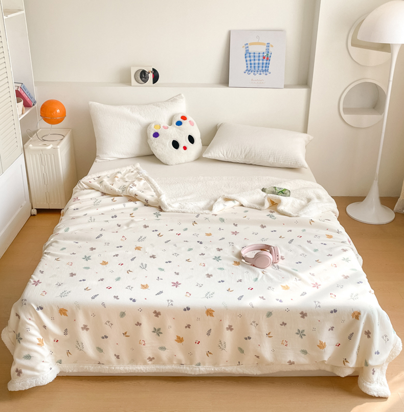 商品名称:857家居 2025新款双层针织纱羊羔绒毛毯 枫叶