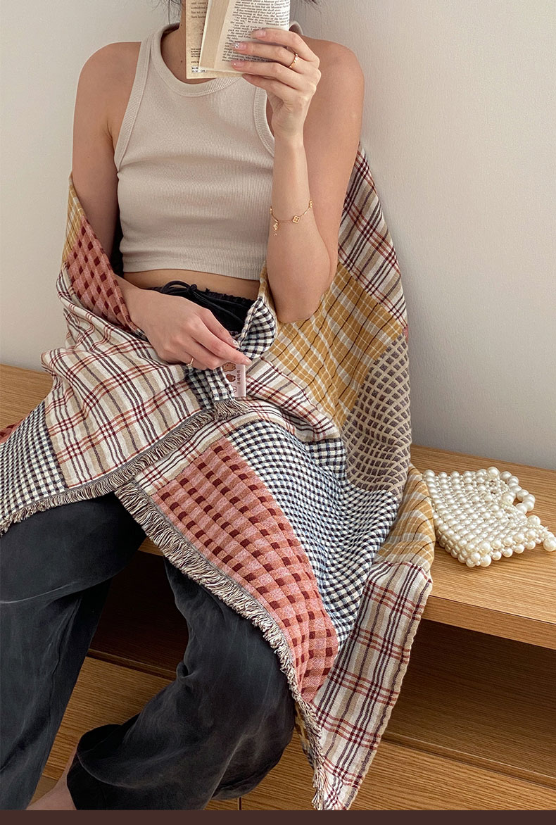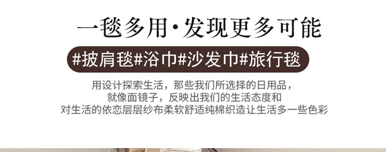商品名称:麻依 2025新款全棉纱布披肩浴巾旅行毯 格律