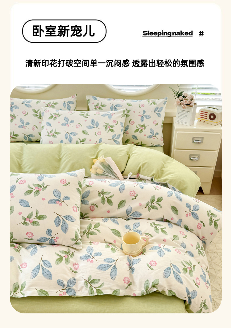 (总)铭浩家纺 2025新款全棉纯棉数码印花四件套,秘密花园-绿,南烟-灰,诺卡-蓝,趣味熊-咖,盛夏-绿,盛夏-紫,舒雅,贴布小熊-绿,西雅图-蓝,颜玉-紫