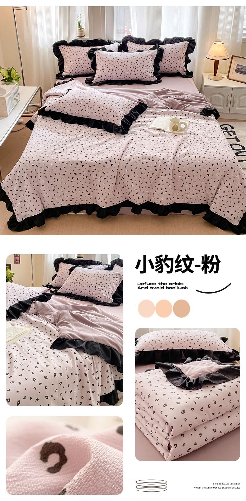 商品名称:首尔家纺 2025新款双层纱夏被系列 小豹纹粉