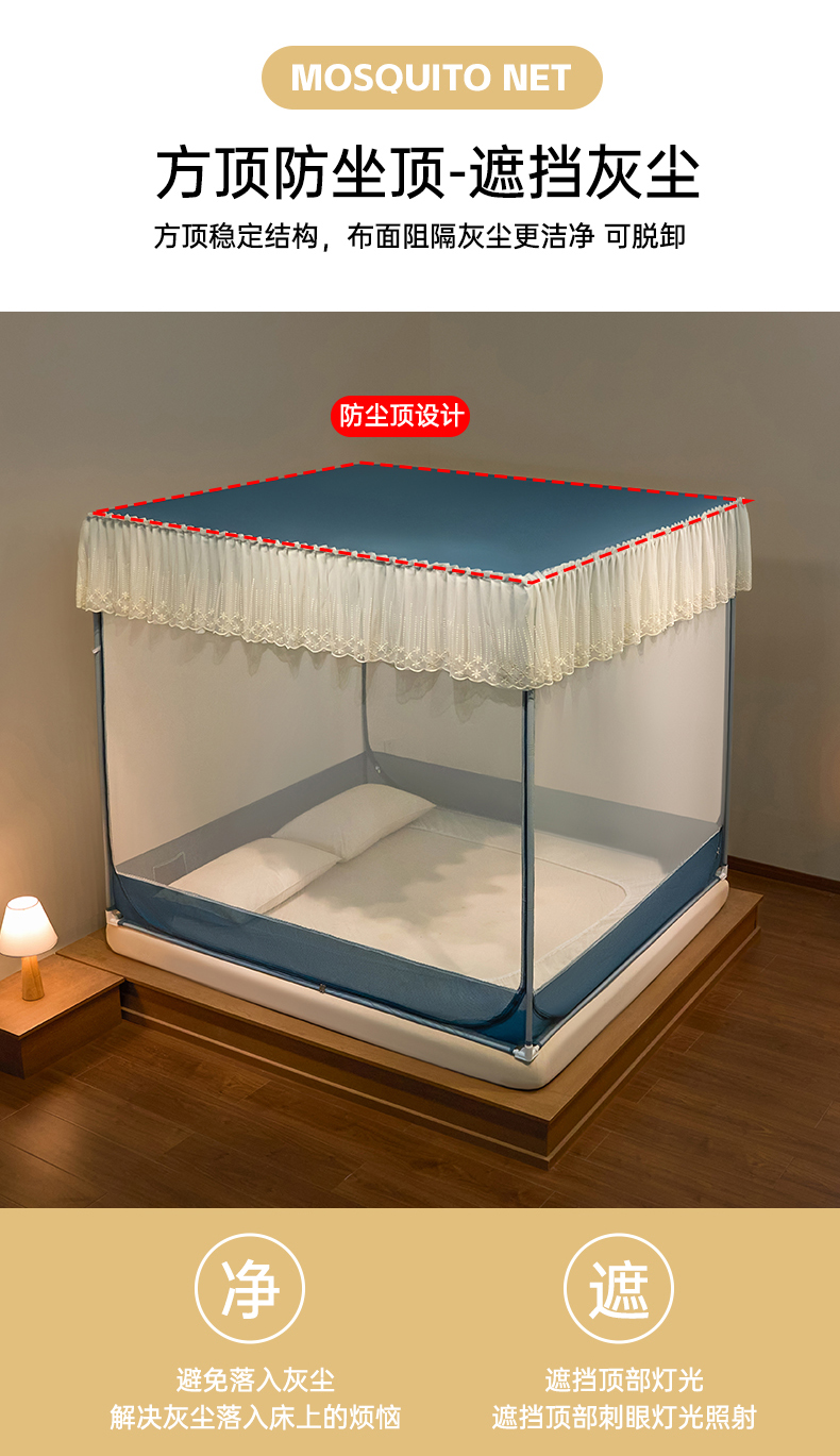 (总)飞轮海蚊帐 2025新款浪漫花边床笠款三开门方顶蚊帐-Z98