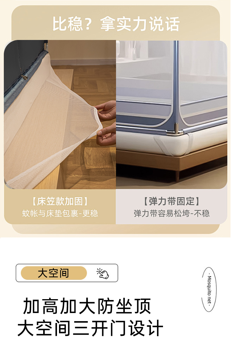 (总)飞轮海蚊帐 2023新款三开门落地遮光蚊帐-L-93,高级灰,芥末绿,奶油黄,香槟