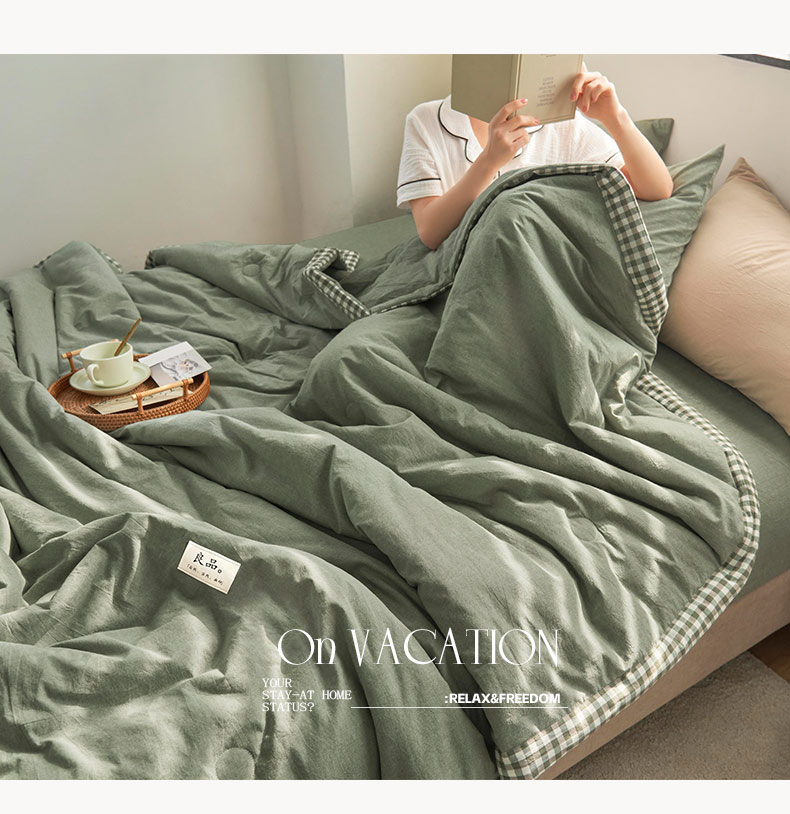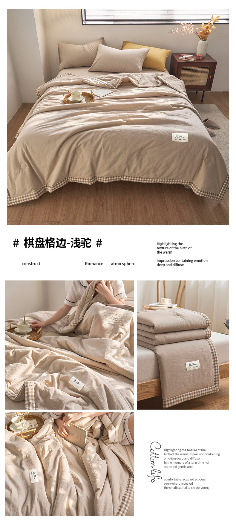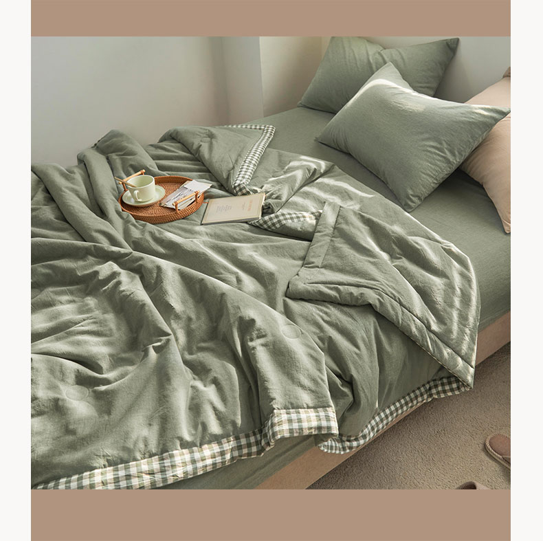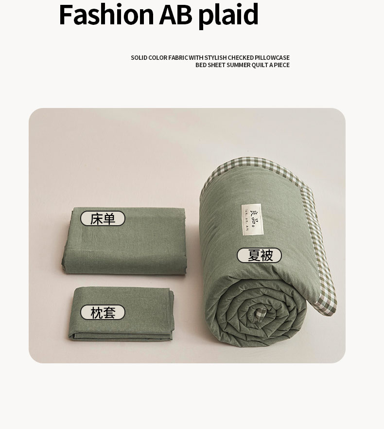 商品名称:子由家居 2025新款水洗棉棋盘格织标大豆纤维夏被被子被芯 棋盘格边夏被-豆绿