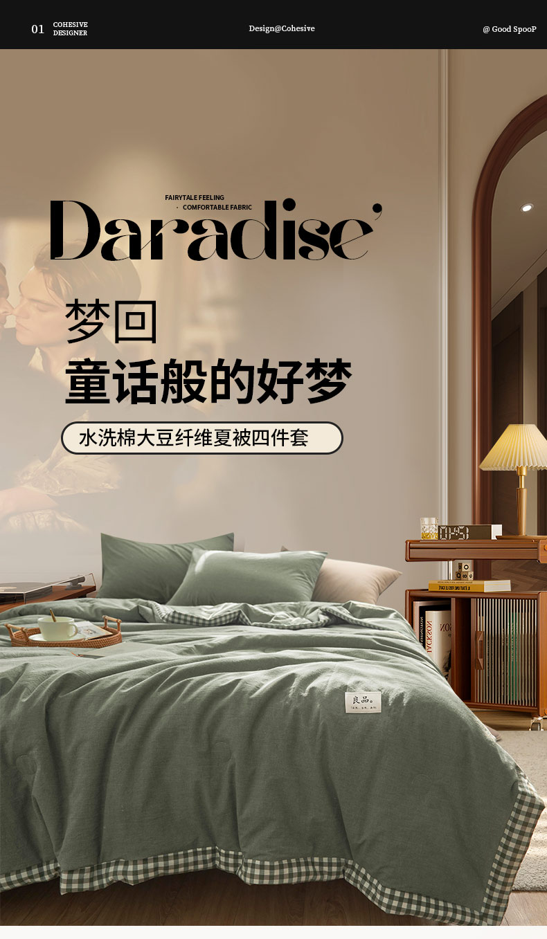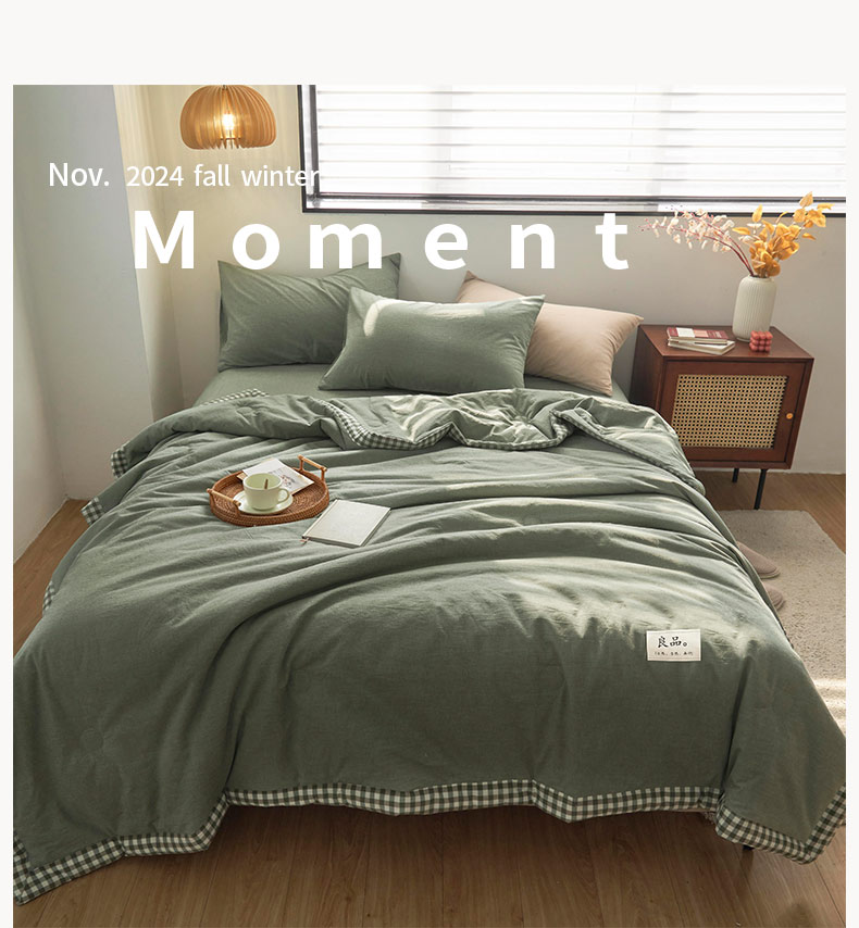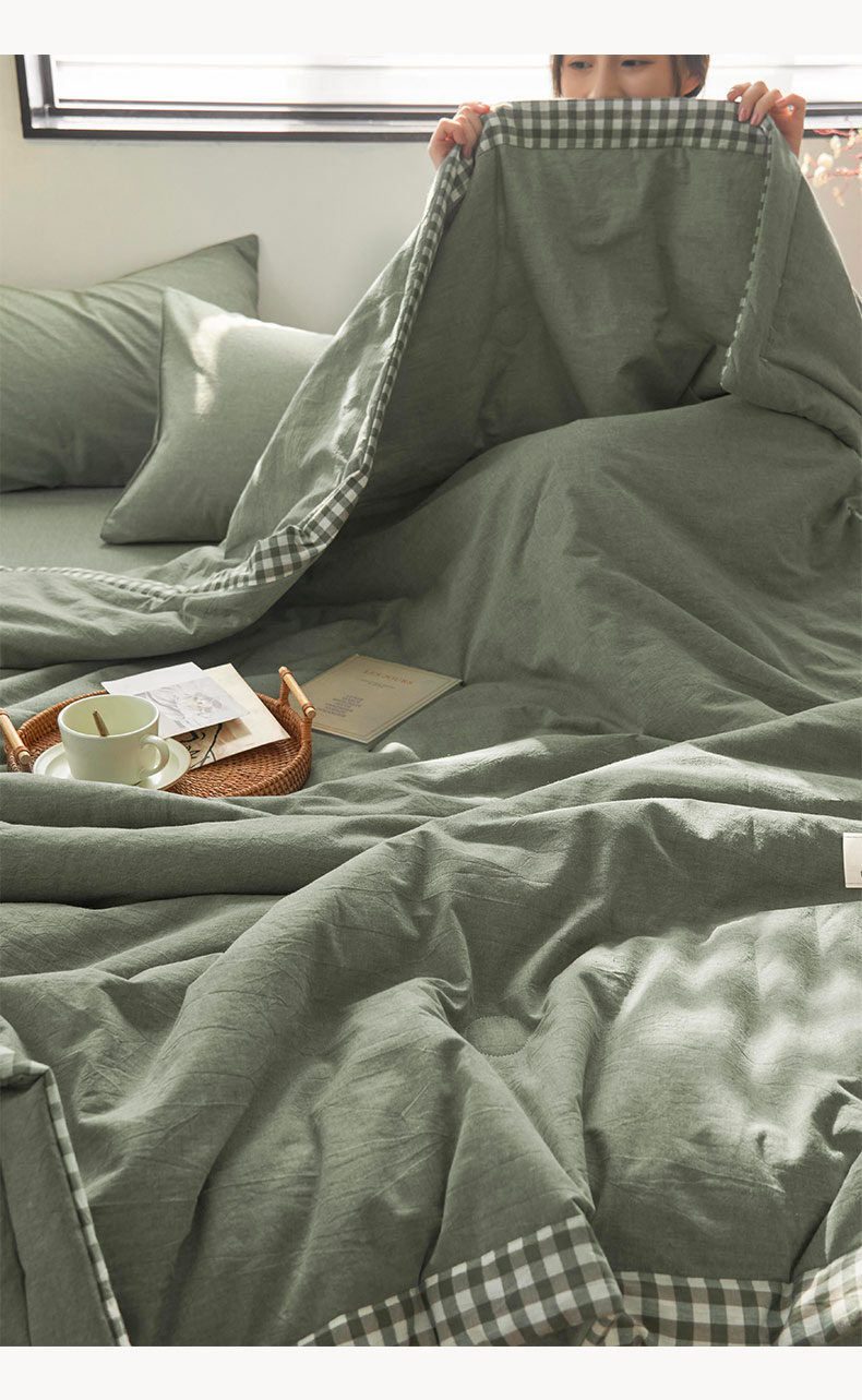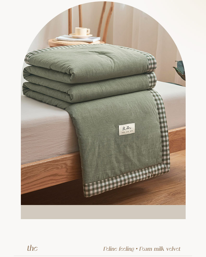 商品名称:子由家居 2025新款水洗棉棋盘格织标大豆纤维夏被被子被芯 棋盘格边夏被-豆绿