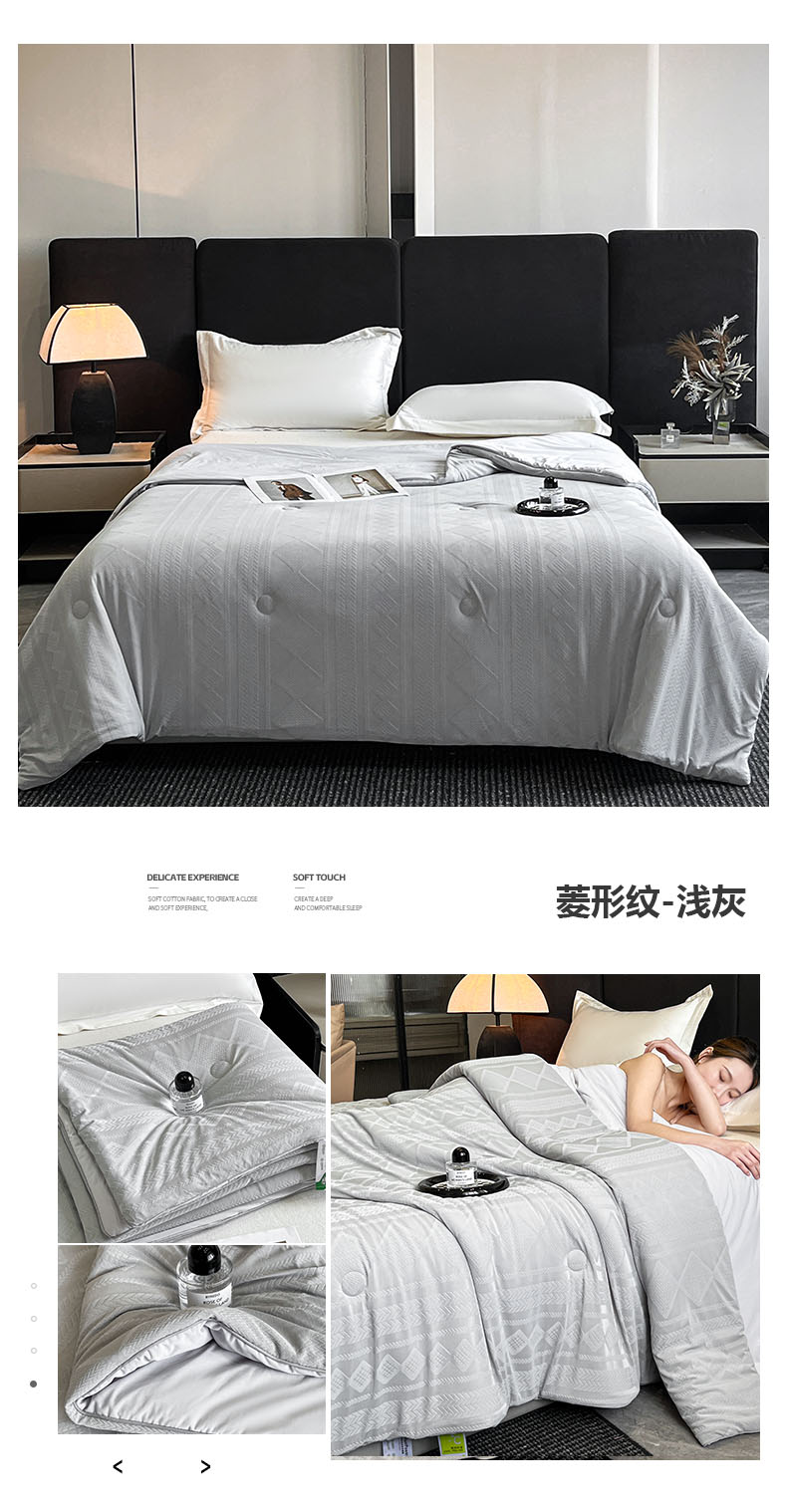 商品名称:子由家居 2025新款凉感丝浮雕提花大豆夏被被子被芯 菱形纹-浅灰