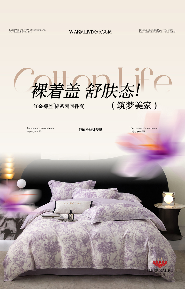商品名称:2025春夏新款【奥斯汀】红金裸盖™棉全棉纯棉红金裸盖棉四件套 (标准号全网控价(折后券后)不低于199元) 奥斯汀-紫