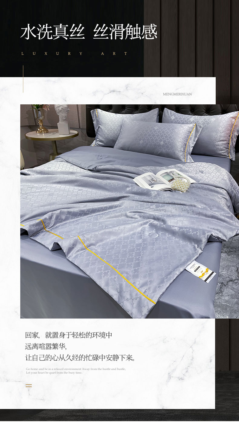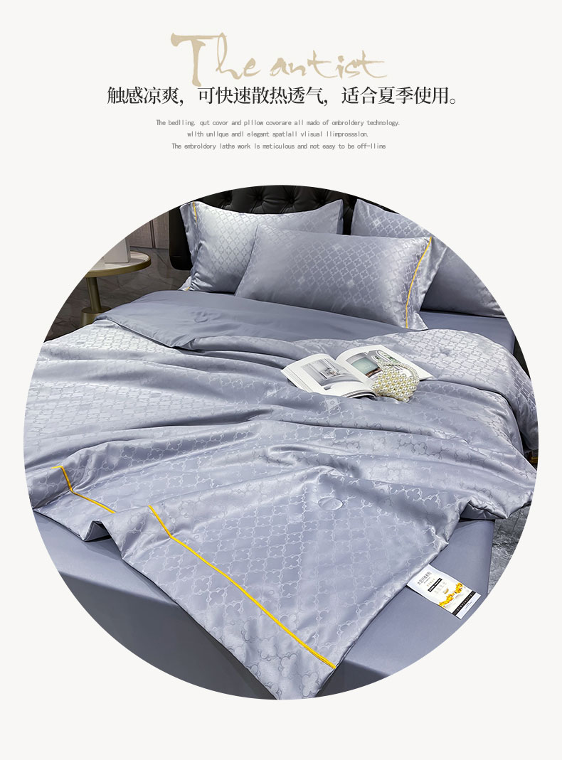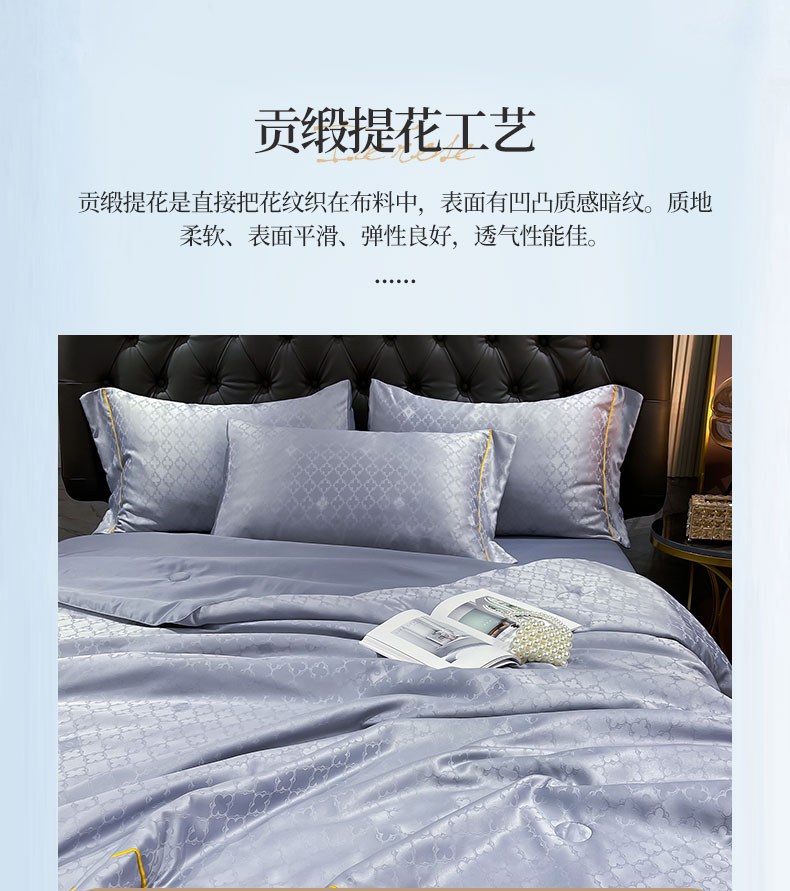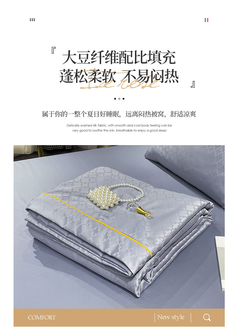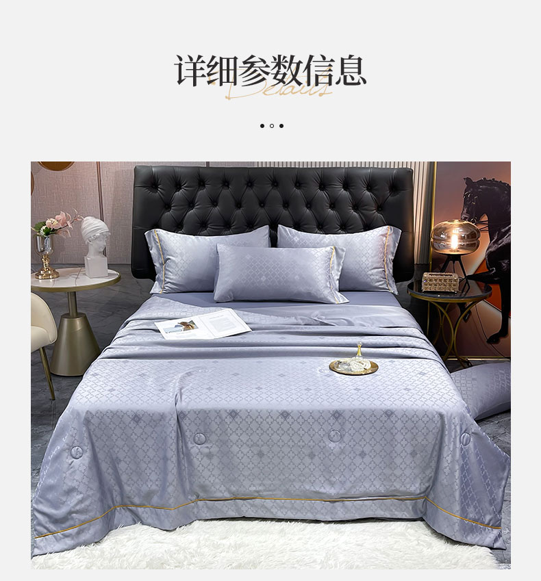 • 91家纺网 家纺一手货源 找家纺 经年 2025新款60S贡缎提花水洗真丝冰丝天丝大豆夏被四件套直播爆款 香瑾-石灰大豆夏被