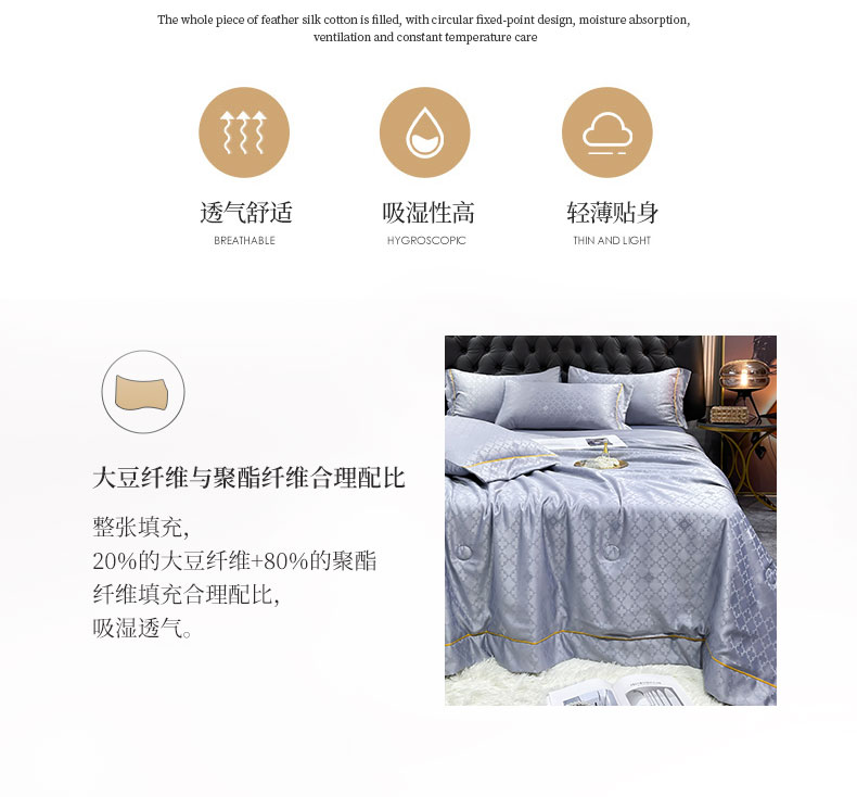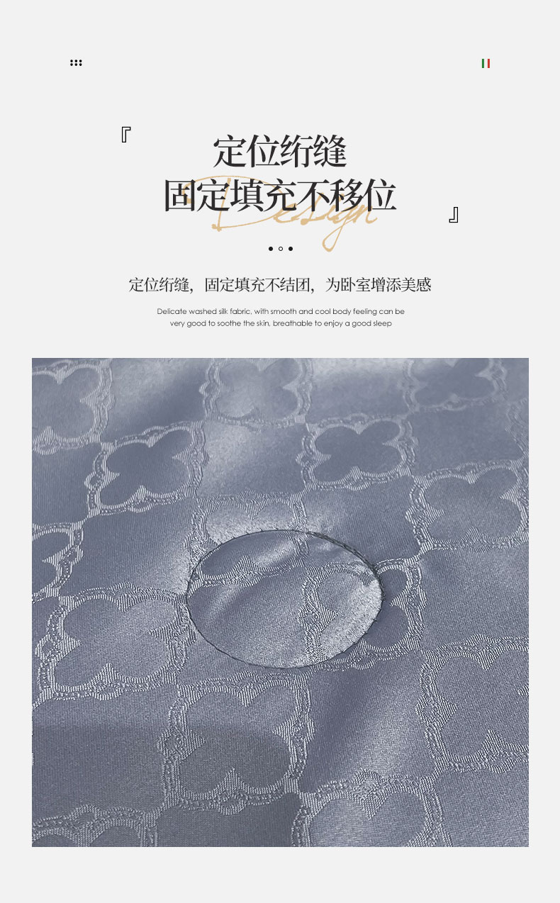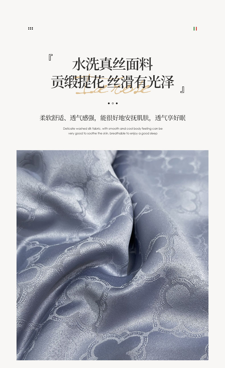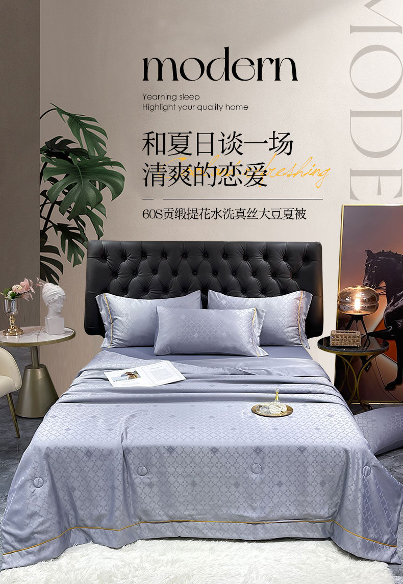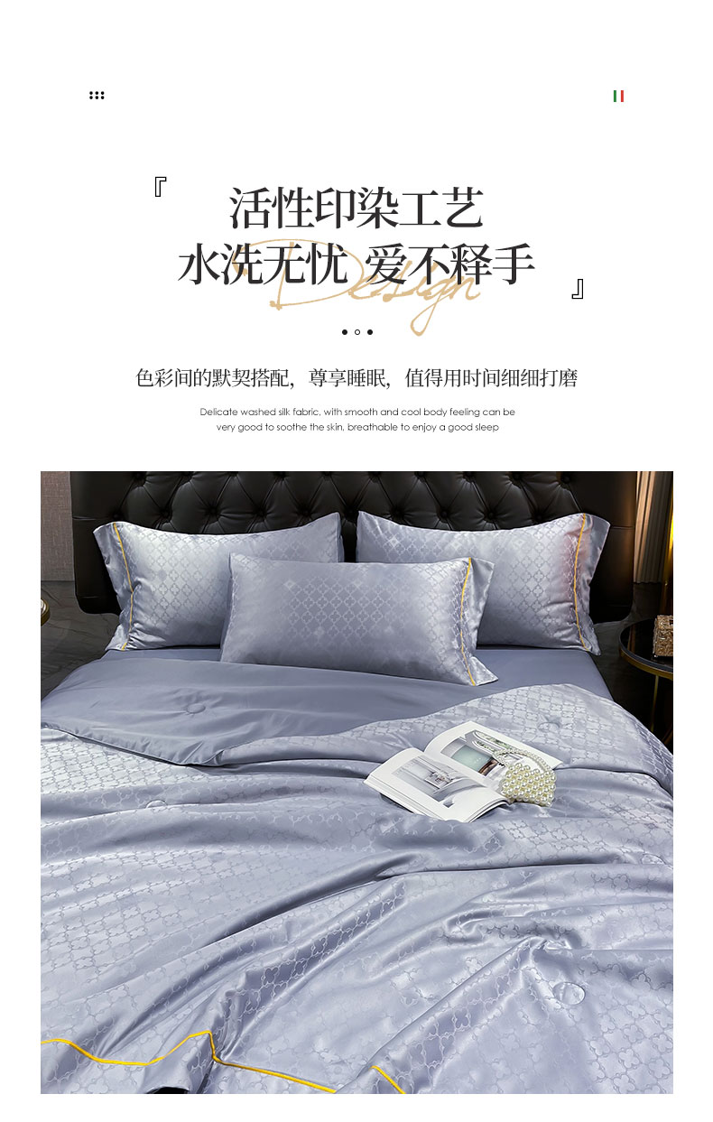 • 91家纺网 家纺一手货源 找家纺 经年 2025新款60S贡缎提花水洗真丝冰丝天丝大豆夏被四件套直播爆款 香瑾-石灰大豆夏被