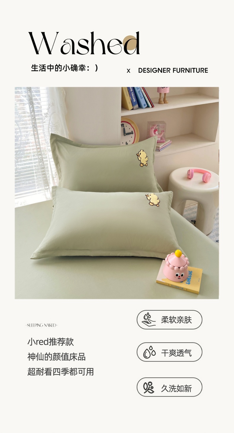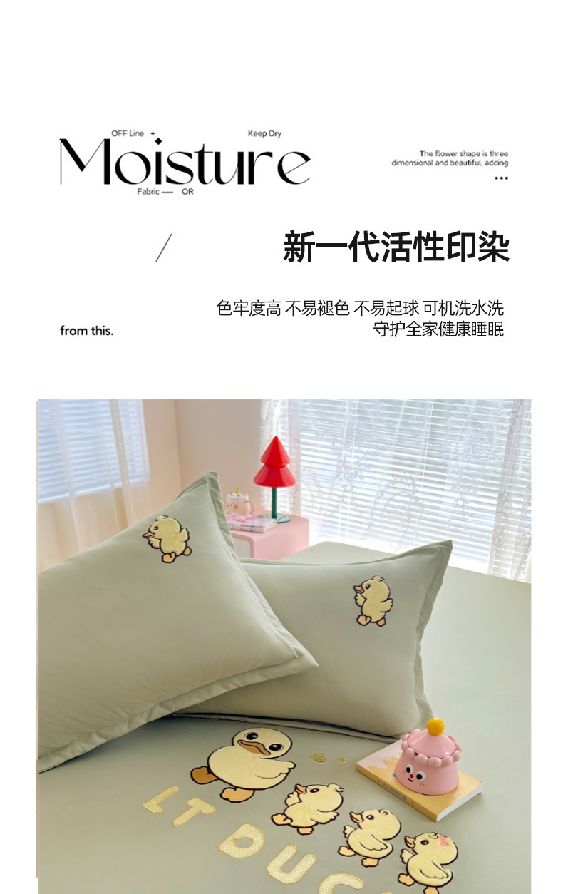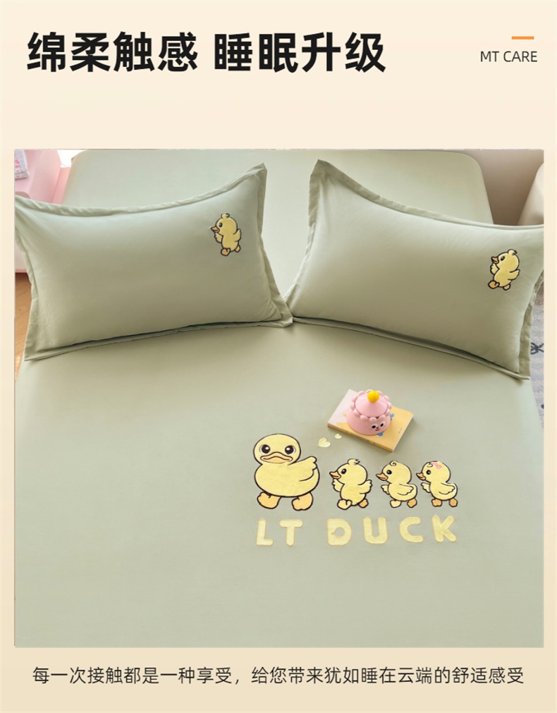 商品名称:梦舒羽 2025新款贴布绣针织棉双层纱枕套 旅行鸭-豆绿