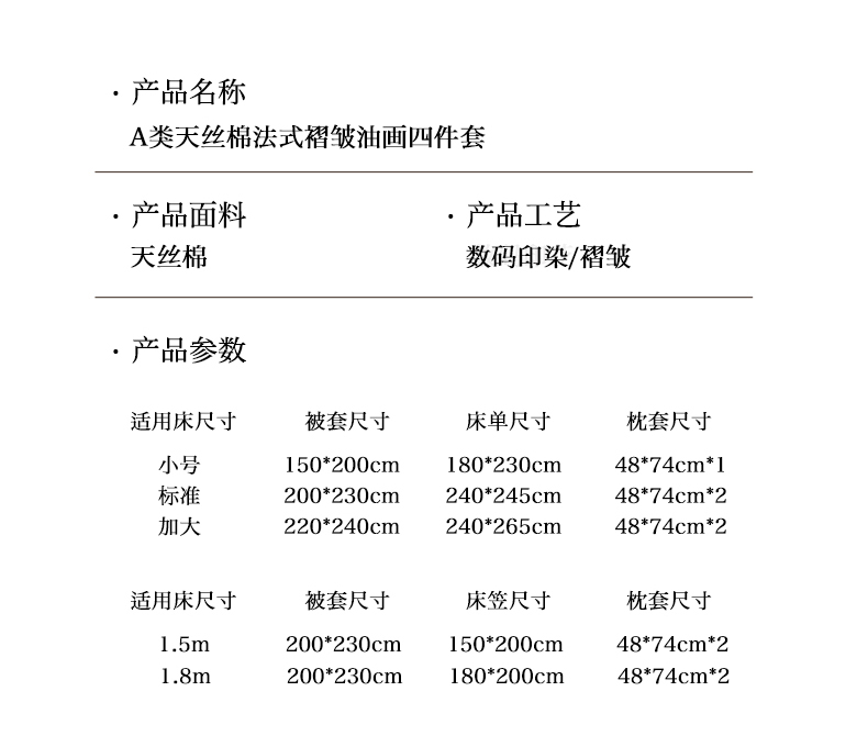 商品名称:(总)艾米家居 2025新款A类天丝棉冰丝法式花边褶皱款四件套