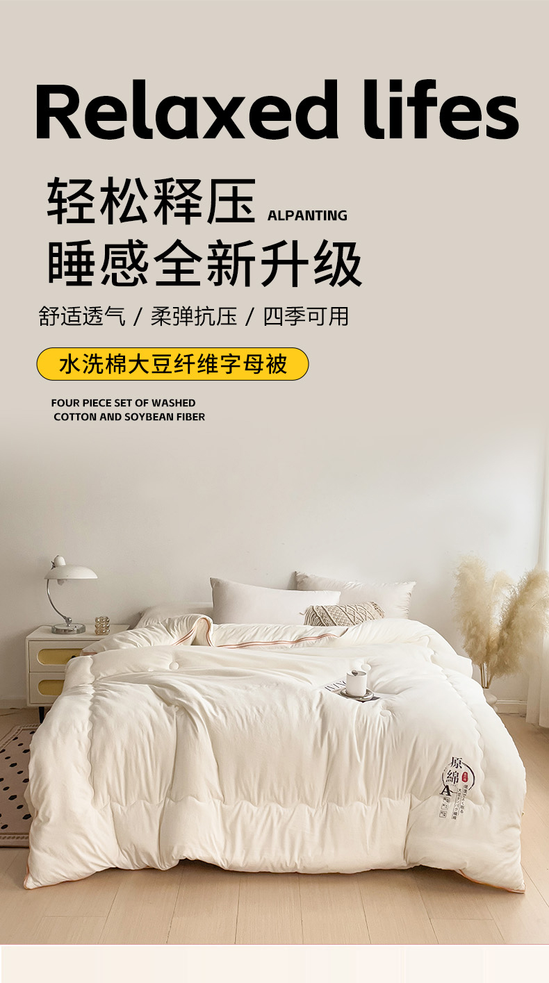 • 91家纺网 家纺一手货源 找家纺 思雅庭 2025新款水洗棉大豆纤维子母被  春秋被 夏被 四季被 被子被芯 白色