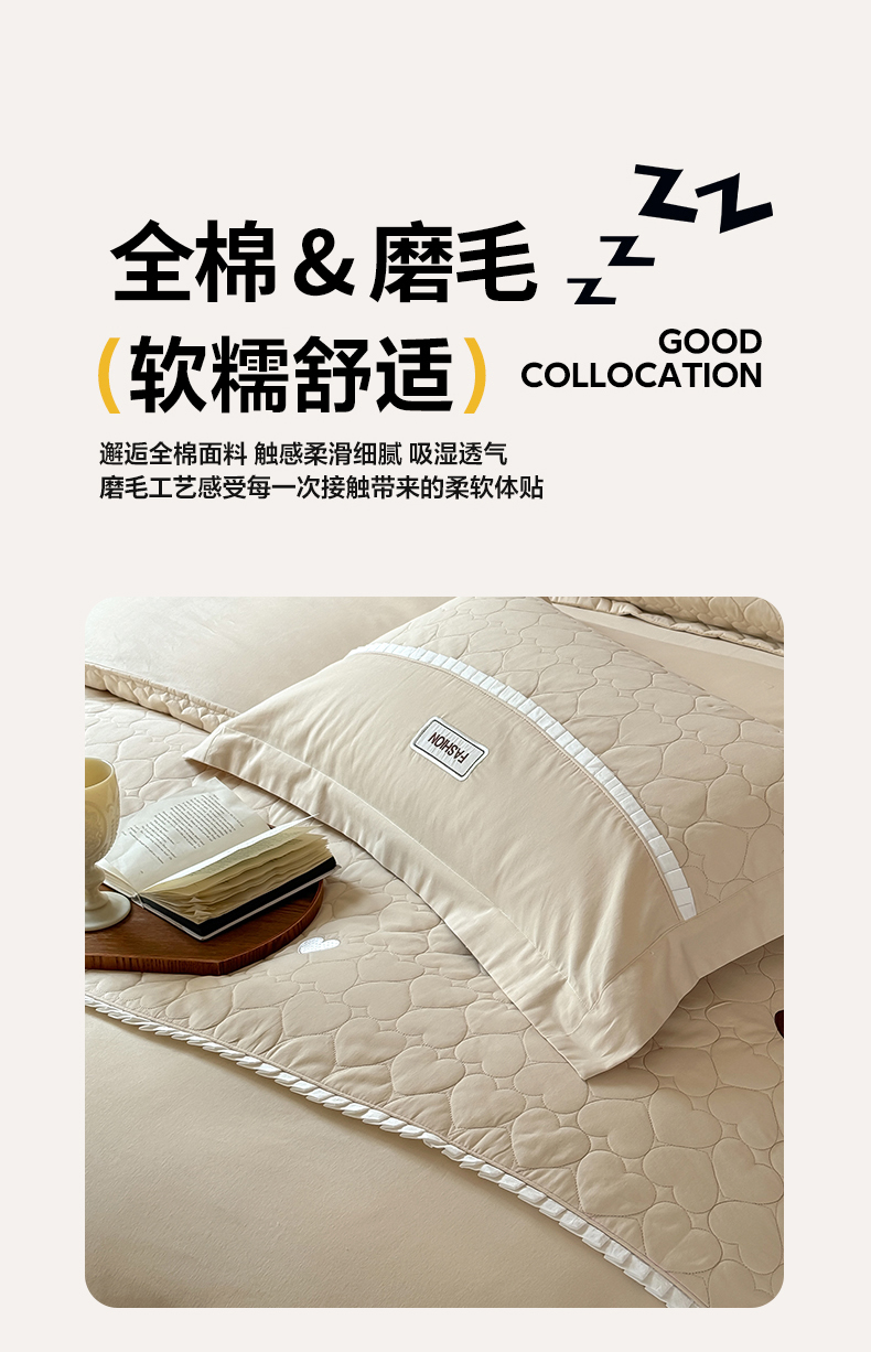 (总)红番天家居馆 2025新款浪漫桃心-全棉绗缝磨毛四件套