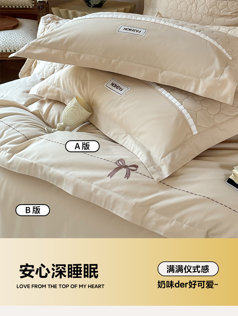 商品名称:(总)红番天家居馆 2025新款浪漫桃心-全棉绗缝磨毛四件套