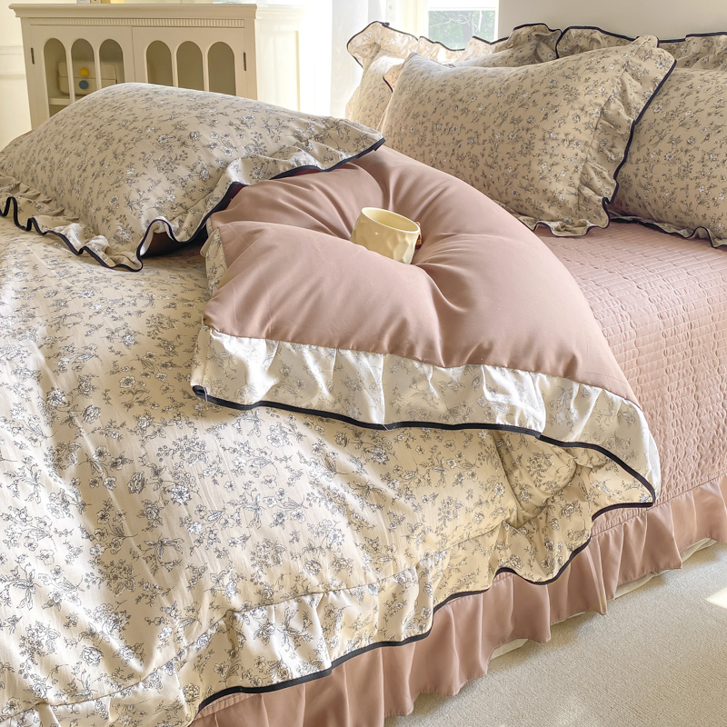 (总)一比一家纺 2025新款古法水洗棉全棉花边蝴蝶结四件套,组合图仅供展示,艾薇,花开满园,静初,可可庄园,绿野仙踪,觅秋,暮归十里,雅集,雅漫花语,悠然雅居,鸢尾兰,紫郁