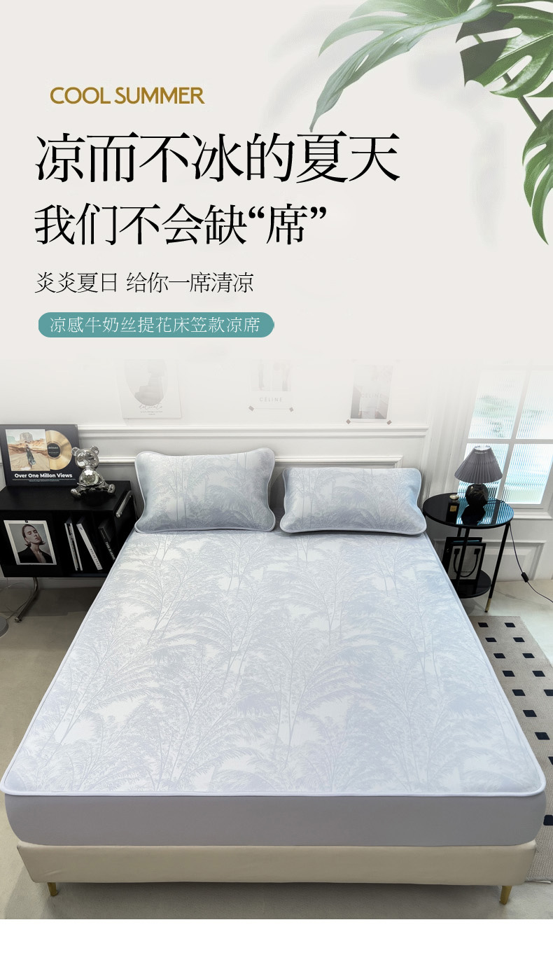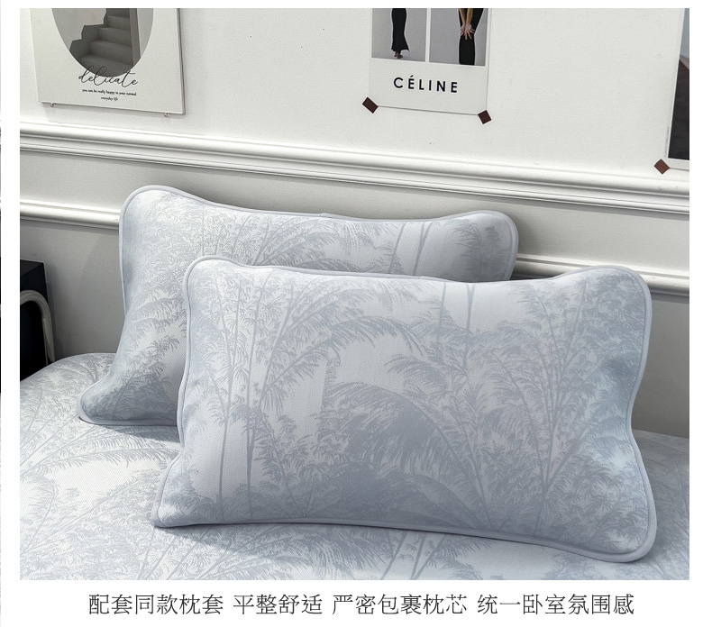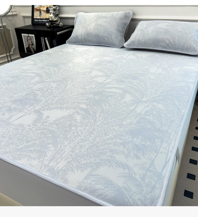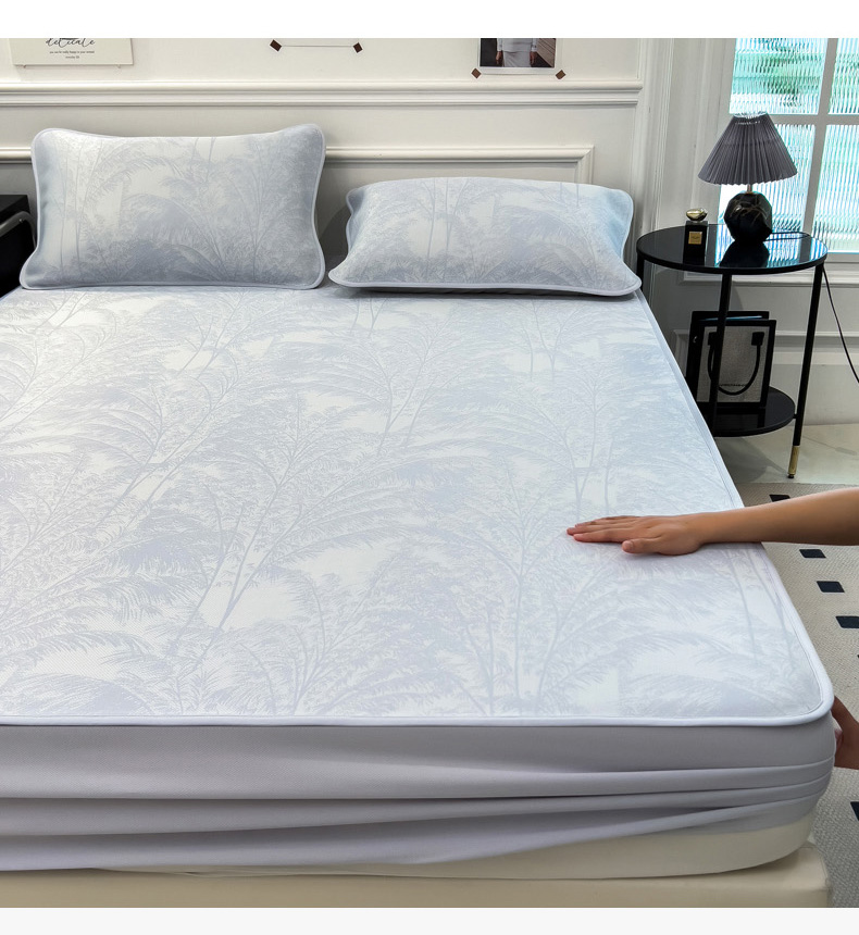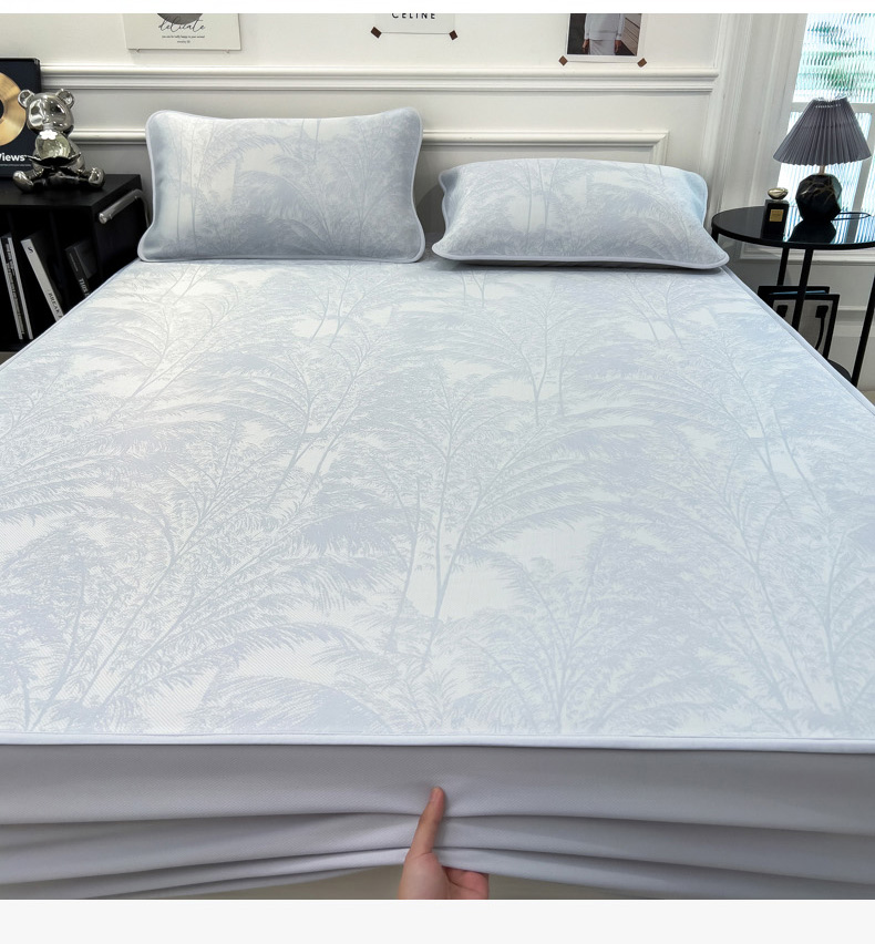 2025新款牛奶丝提花凉感凉席系列床笠款 森林奇境蓝床笠款