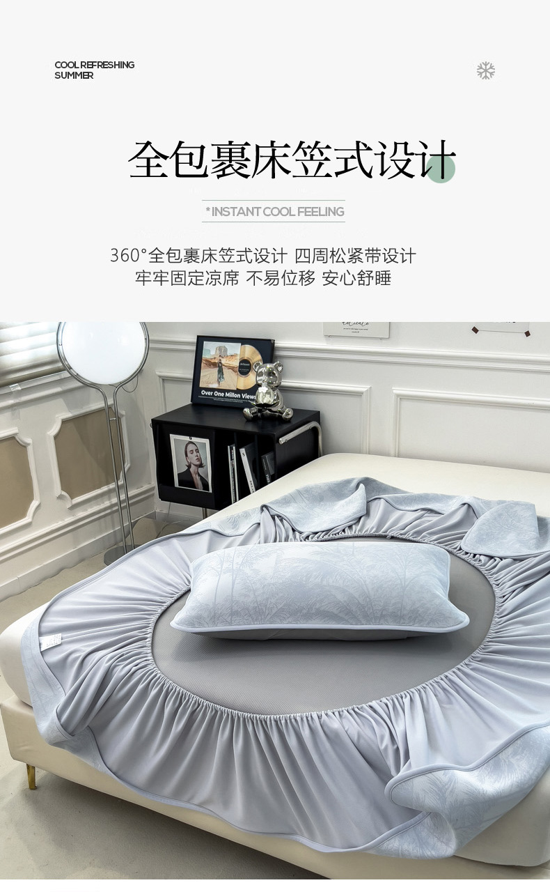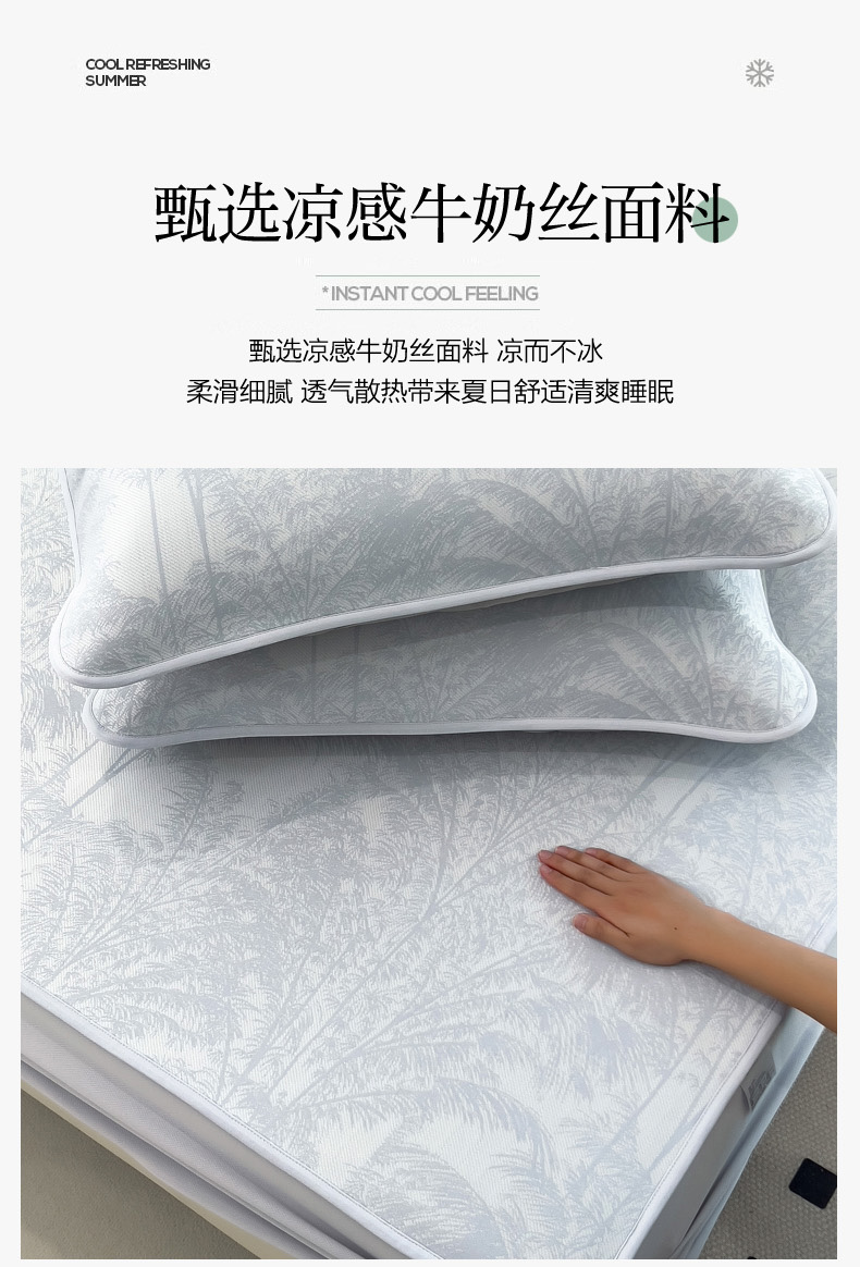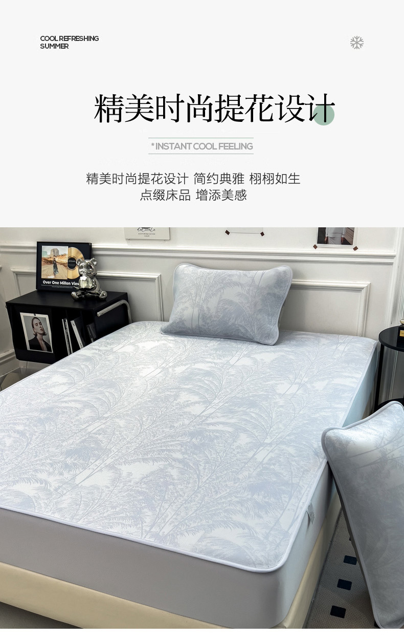 2025新款牛奶丝提花凉感凉席系列床笠款 森林奇境蓝床笠款