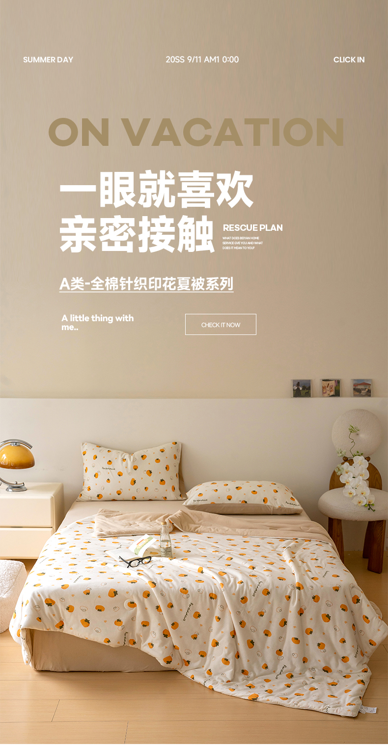 • 91家纺网 家纺一手货源 找家纺 华超针织 2025新款全棉针织印花夏被 柿柿如意