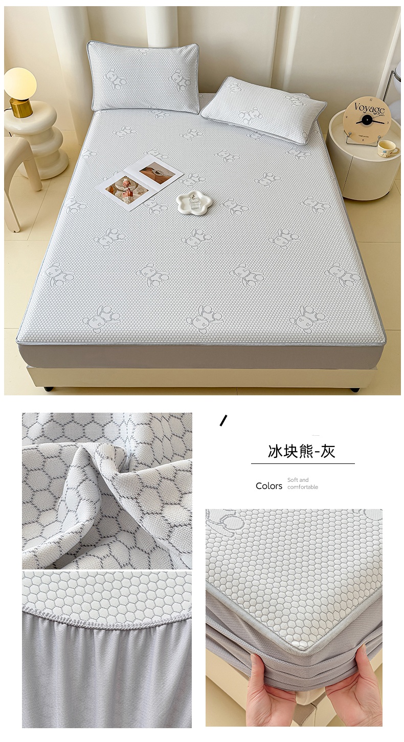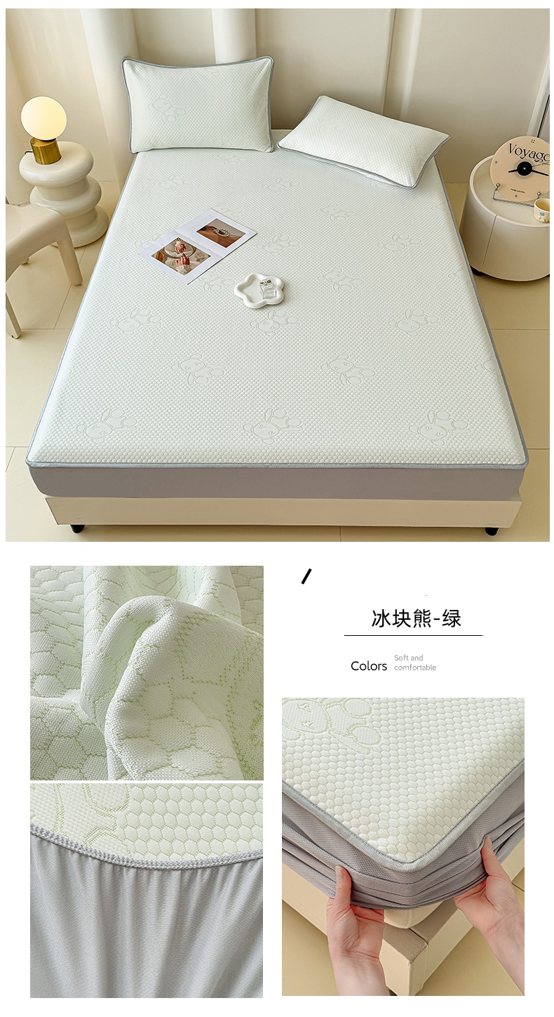 (总)999家纺 2025新款冰块熊豆豆凉席床笠款