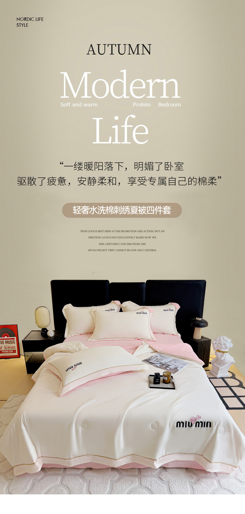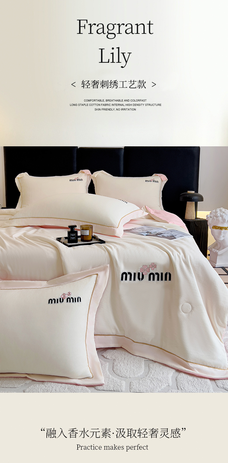 当前位置: 91家纺网 > 商品网购 > 床品套件 > 四件套 > 夏被四件套 > 灰鲸 2025新款轻奢miumin刺绣水洗棉夏被四件套系列 miumin-奶昔白+樱花粉