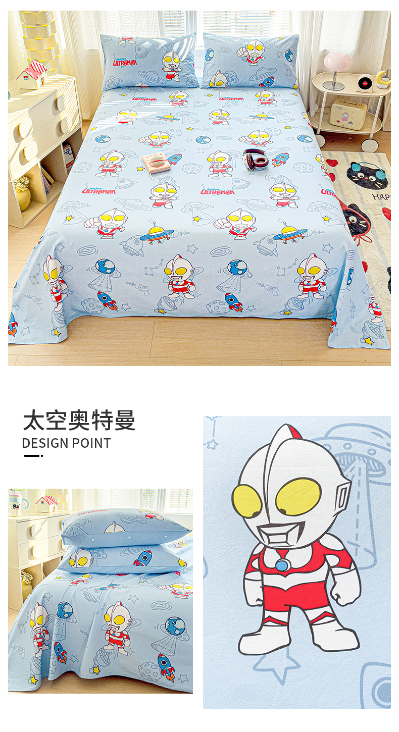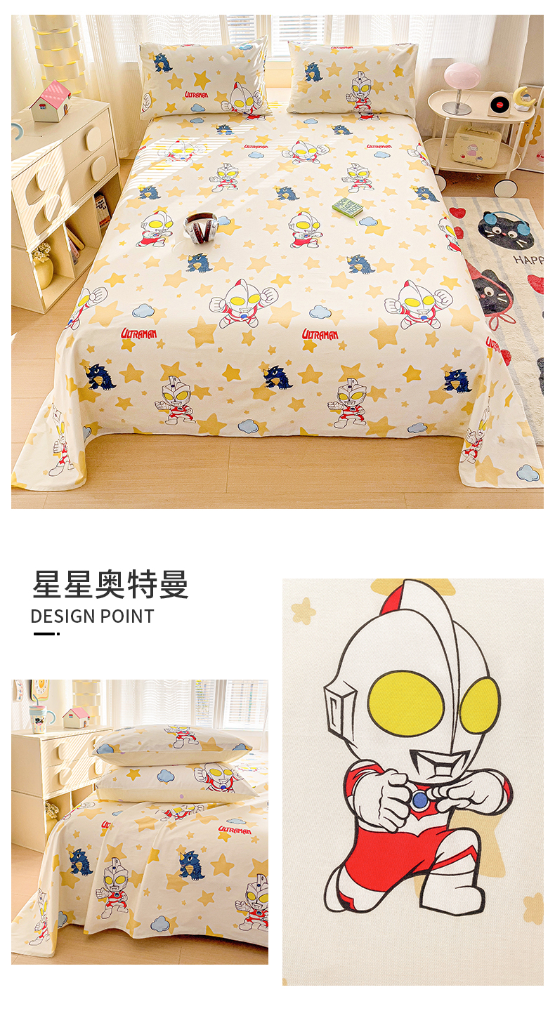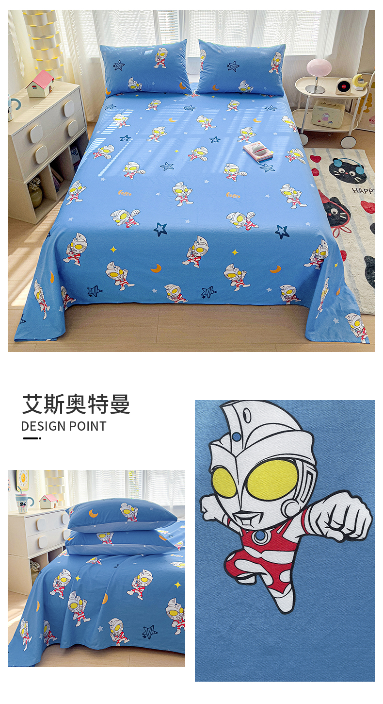 商品名称:(总)名兮家居 2025新款全棉纯棉经典小版奥特曼三丽鸥床单【含防伪标】