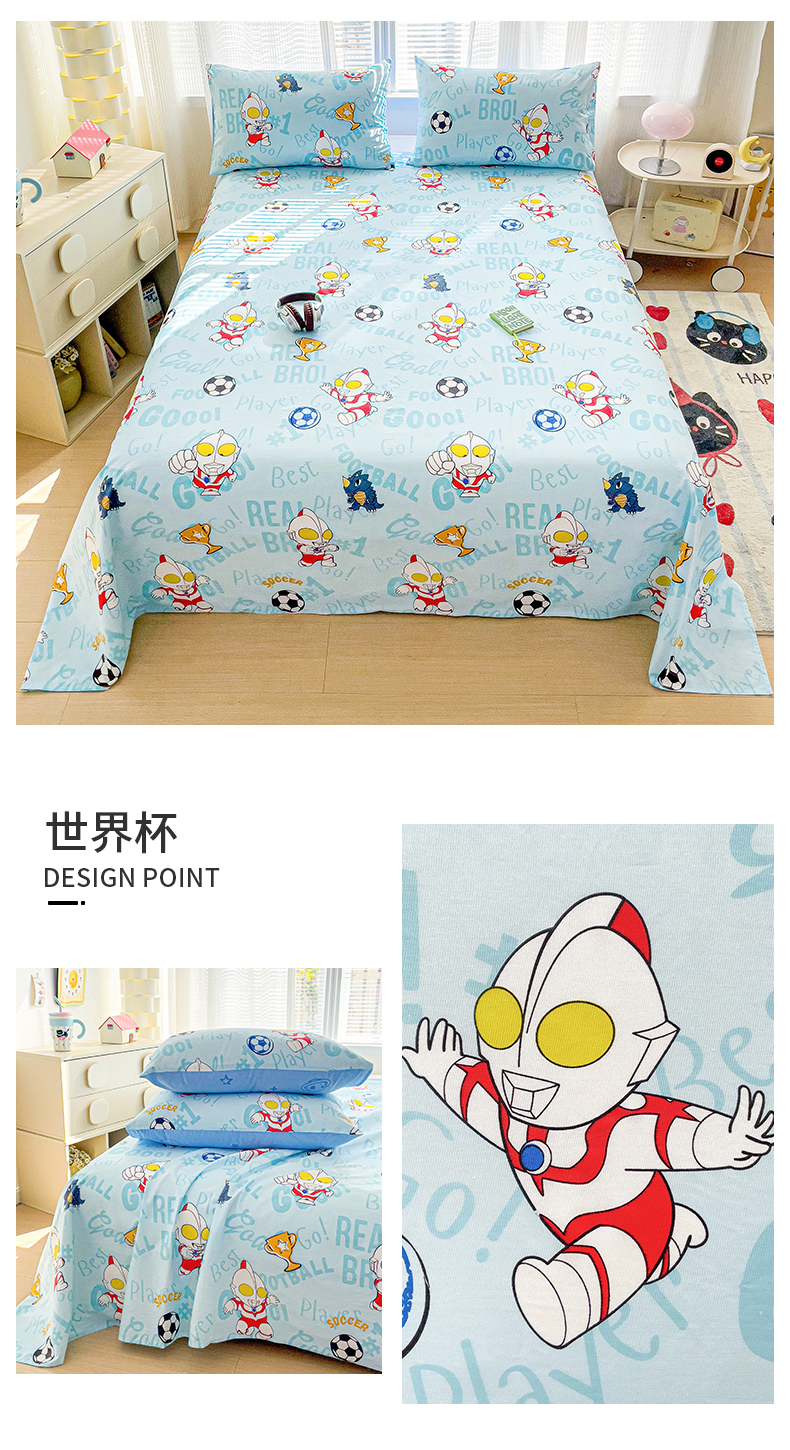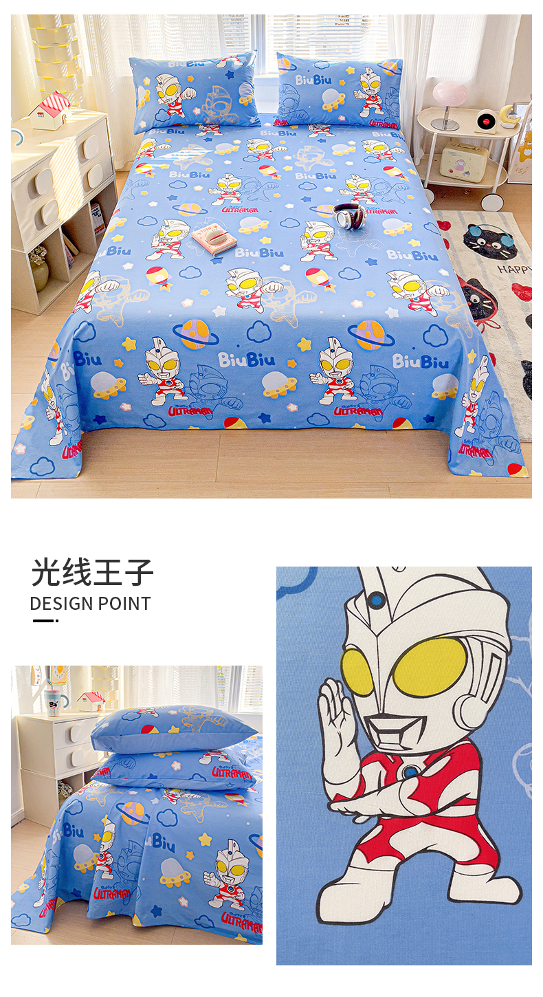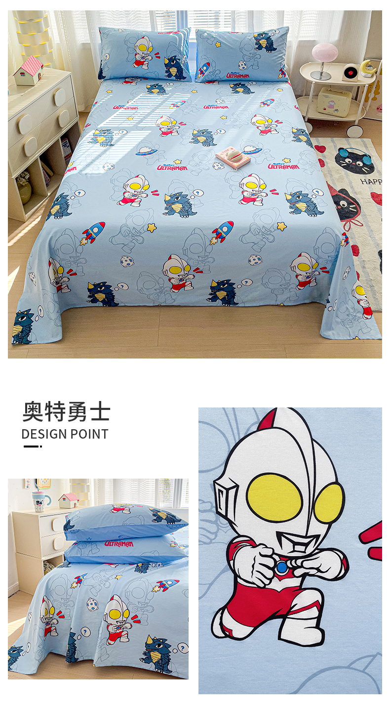 商品名称:(总)名兮家居 2025新款全棉纯棉经典小版奥特曼三丽鸥床单【含防伪标】