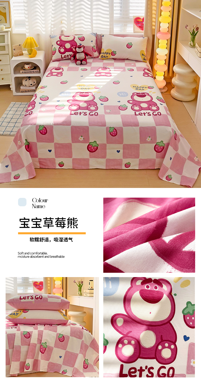 (总)名兮 2023新款全棉印花卡通风四件套,抱抱熊,波波熊,菲菲兔,机器小新,可爱萌宠,可爱兔