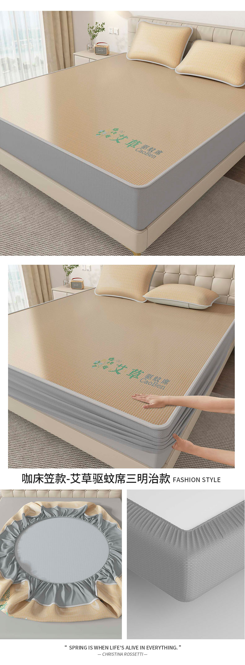 (总)福来临家纺 2025新款艾草驱蚊席三明治款-床席款-床笠款,粉床笠款,灰床笠款,咖床笠款,蓝床笠款,绿床笠款,粉床席款,灰床席款,咖床席款,蓝床席款,绿床席款