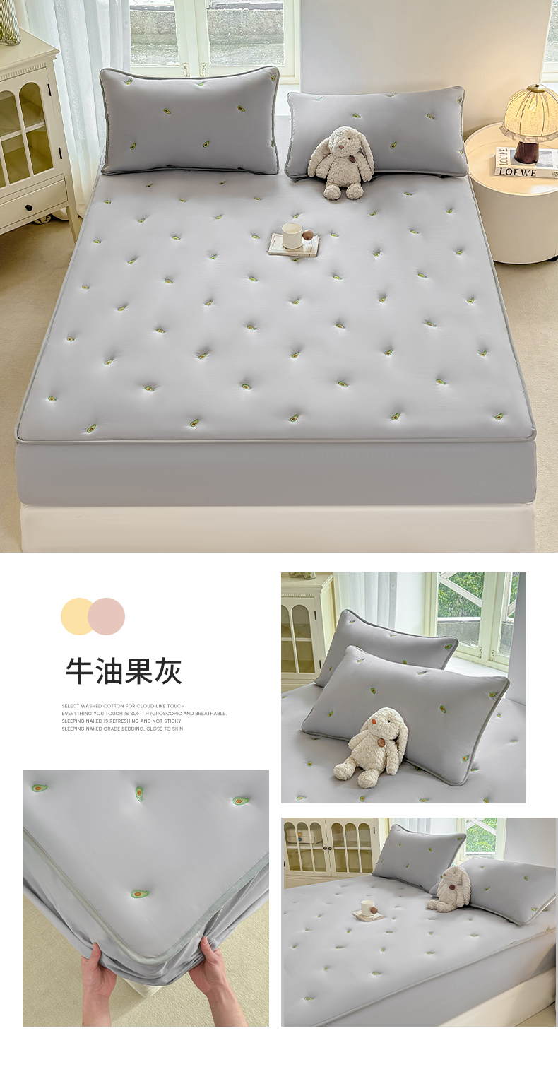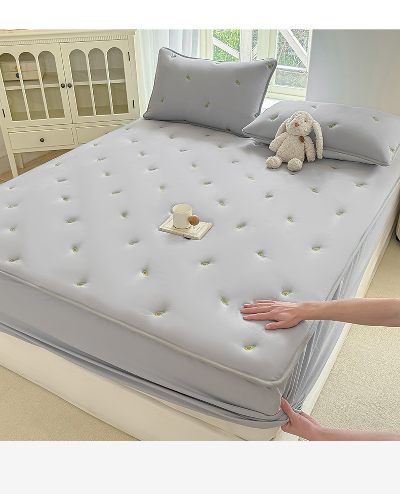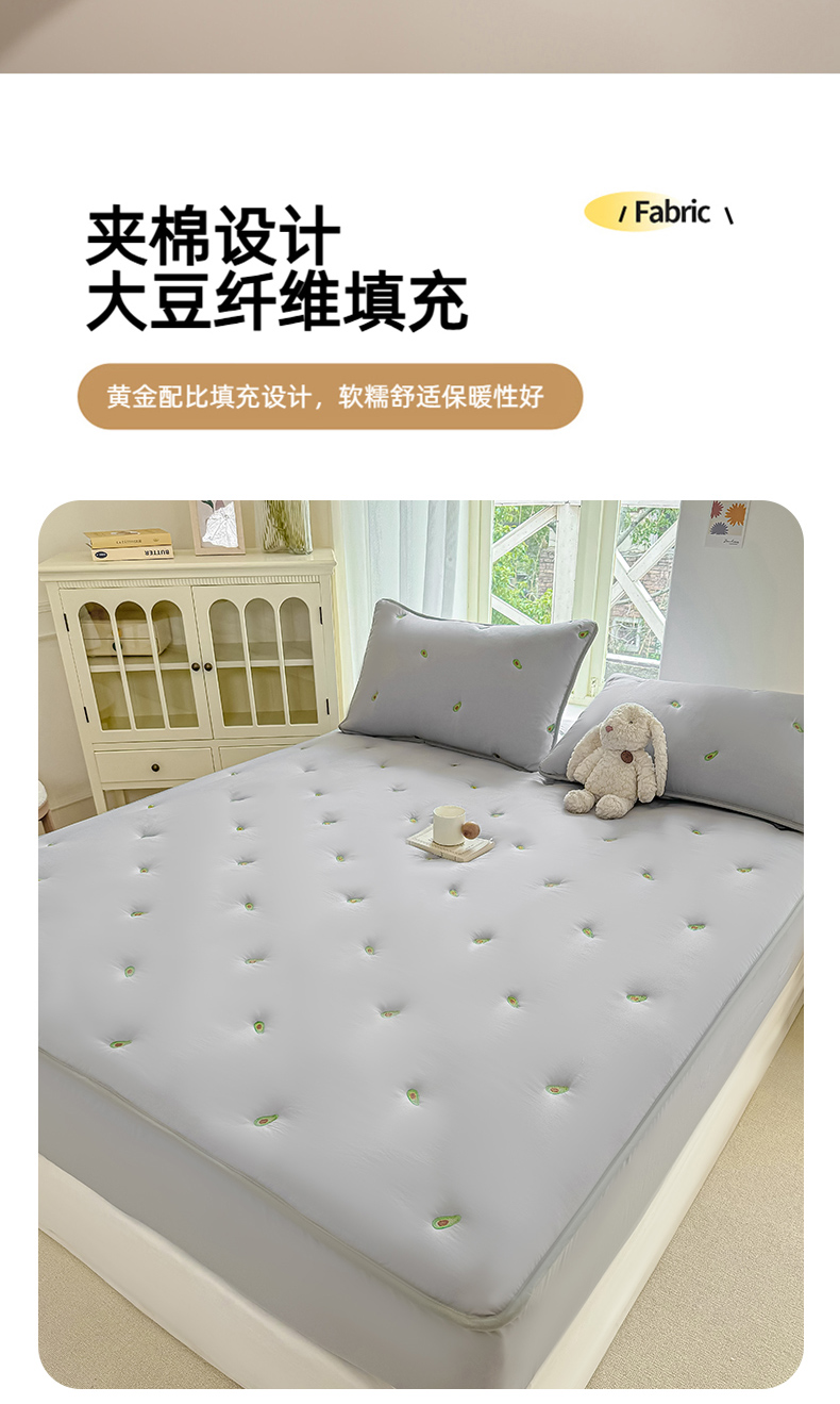 2025新款A类亲肤大豆棉刺绣夹棉床笠床褥学生床垫 牛油果灰