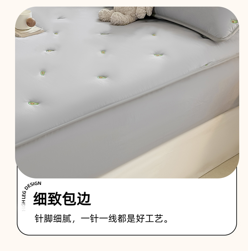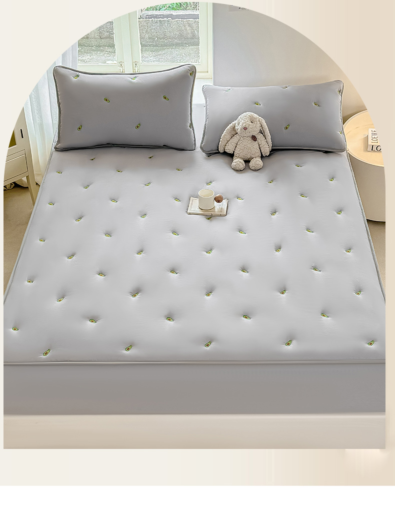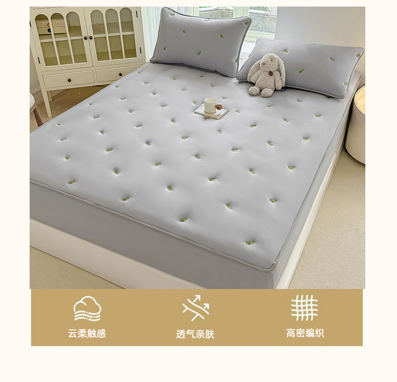 • 91家纺网 家纺一手货源 找家纺  2025新款A类亲肤大豆棉刺绣夹棉床笠床褥学生床垫 牛油果灰