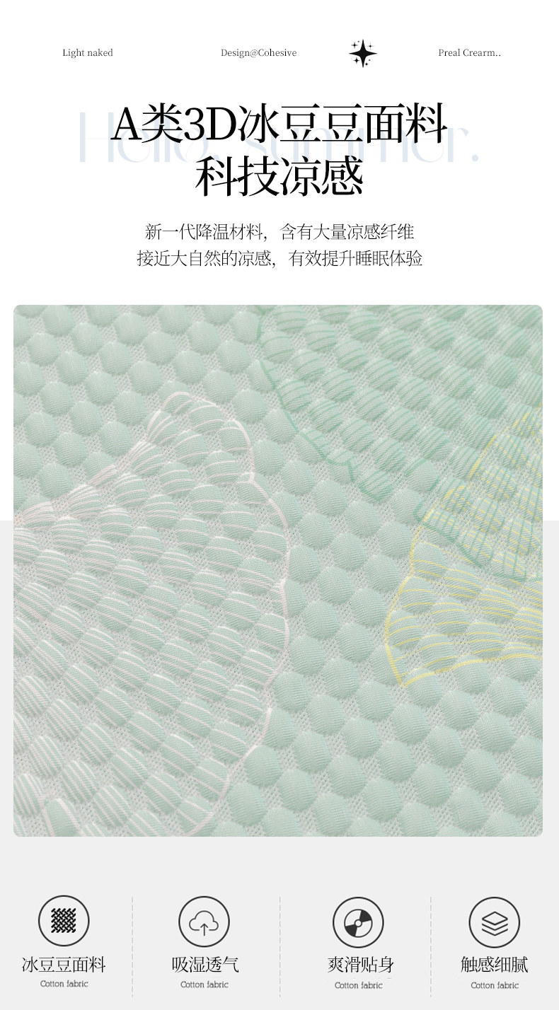 商品名称: 2025新款A类冰豆豆床裙款印花凉席 有杏