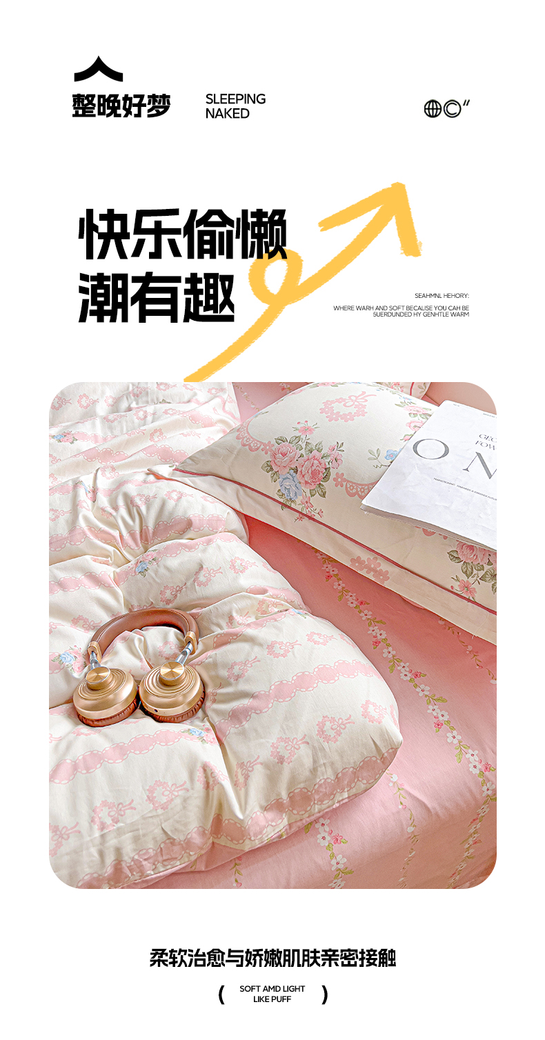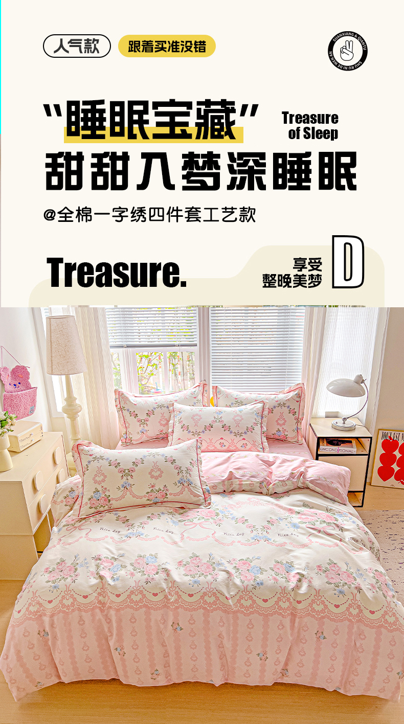 商品名称:优选良品 2025新款全棉纯棉一字绣四件套系列 半夏清风