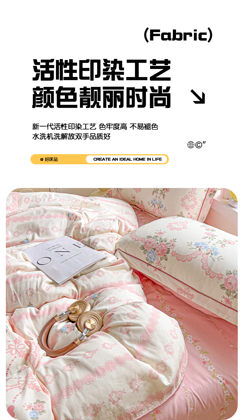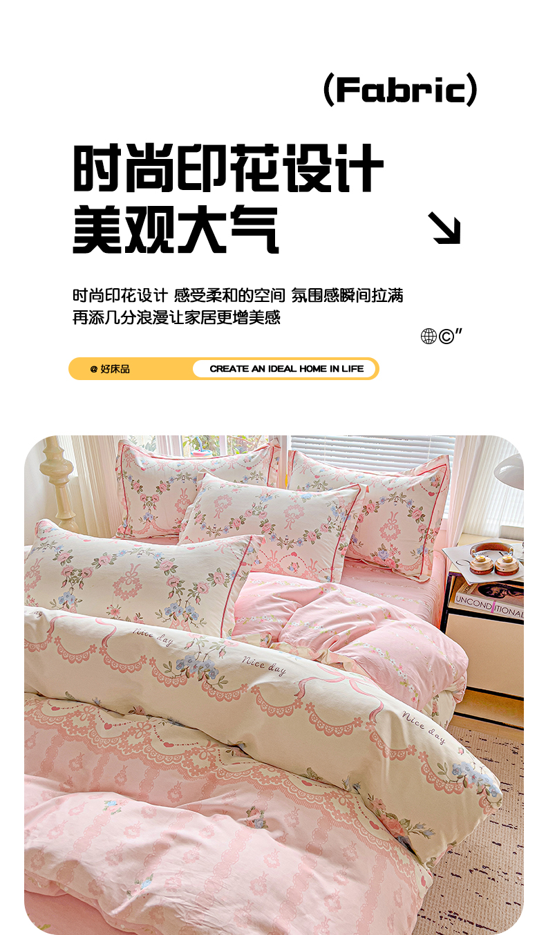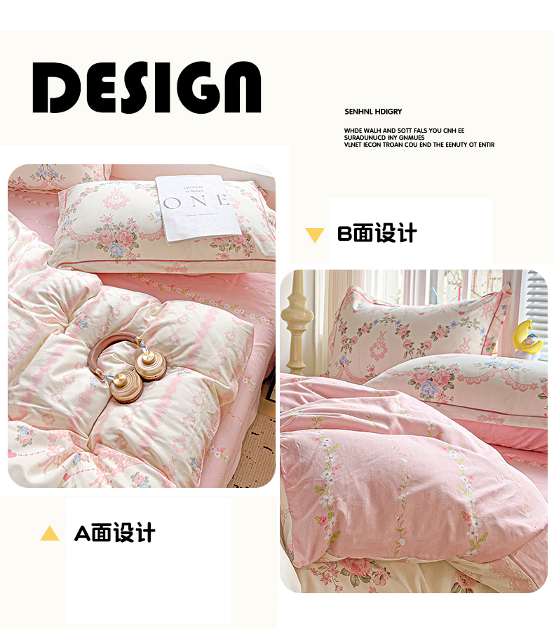 优选良品 2025新款韩版轻奢皱皱纱水洗棉拼色床单床笠四件套三件套-黛粉,黛粉