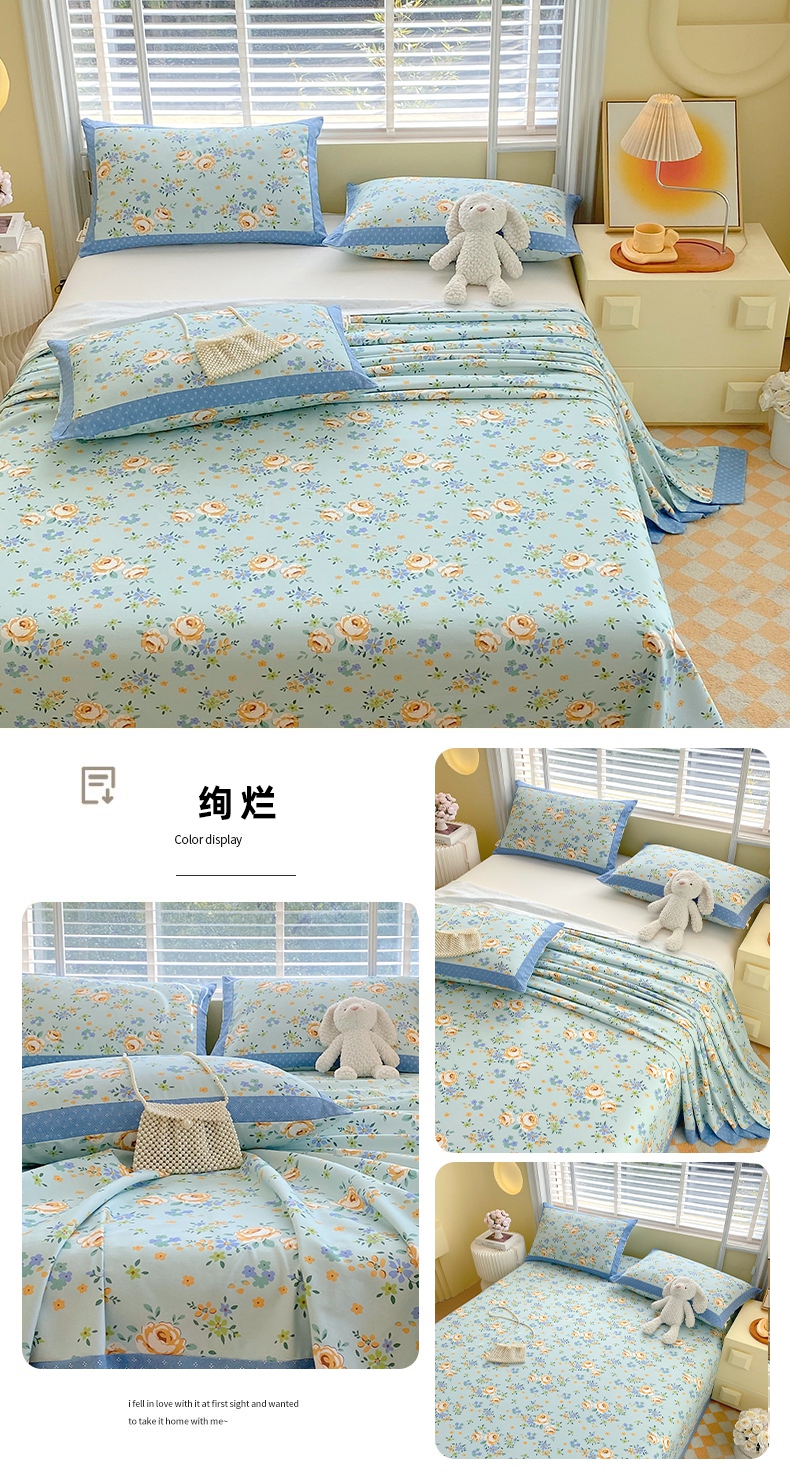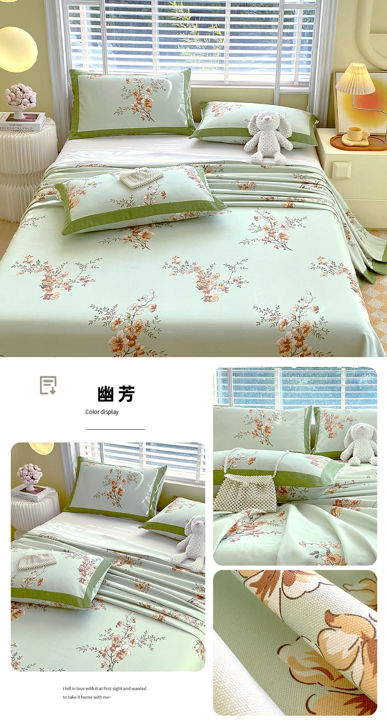 (总)春皖家纺 2024新款竹纤维绣花床单凉席风格一,流星蓝,浅藕粉,淡雅绿,苍岭绿,雅岩灰,霞光紫