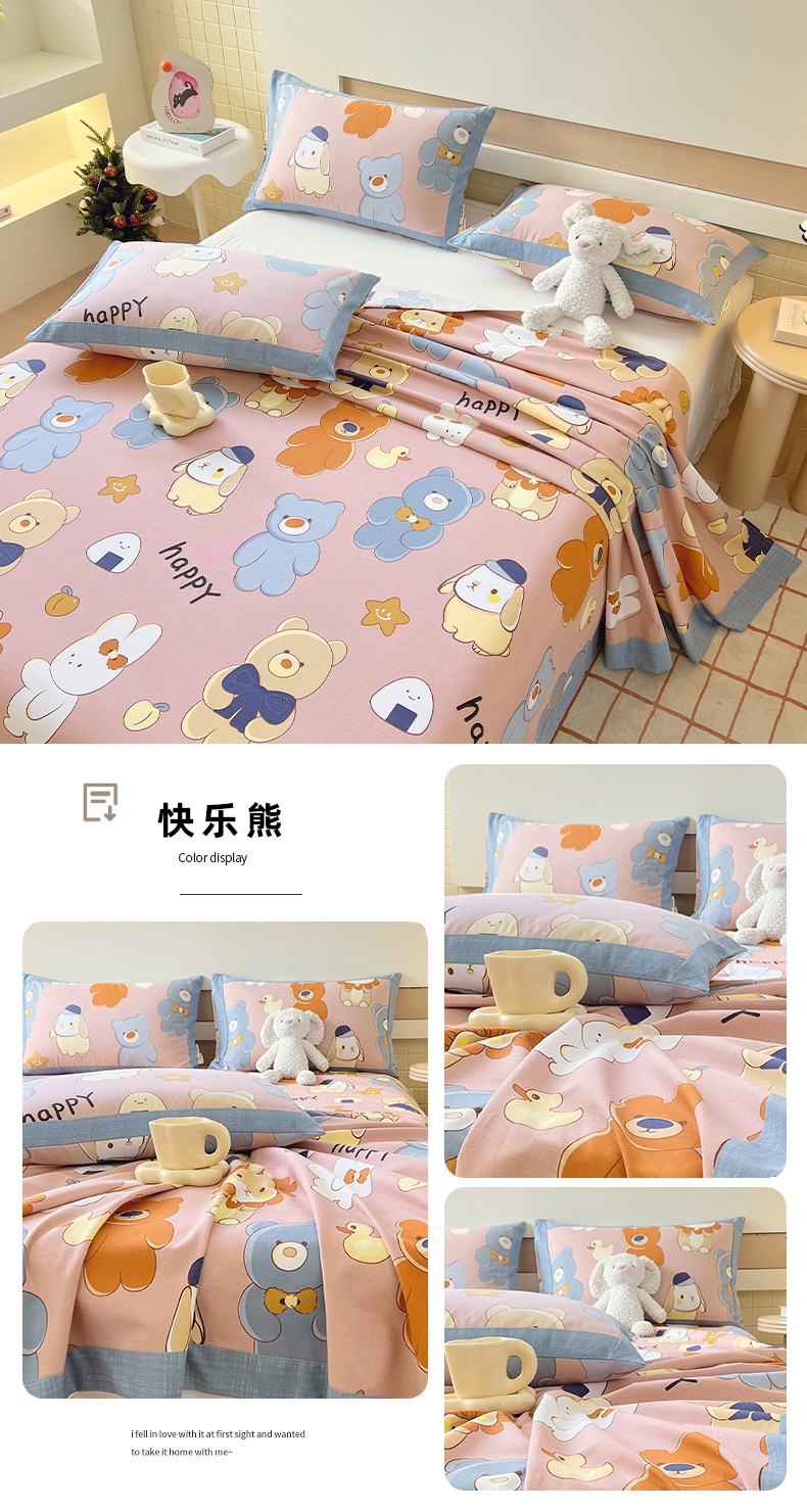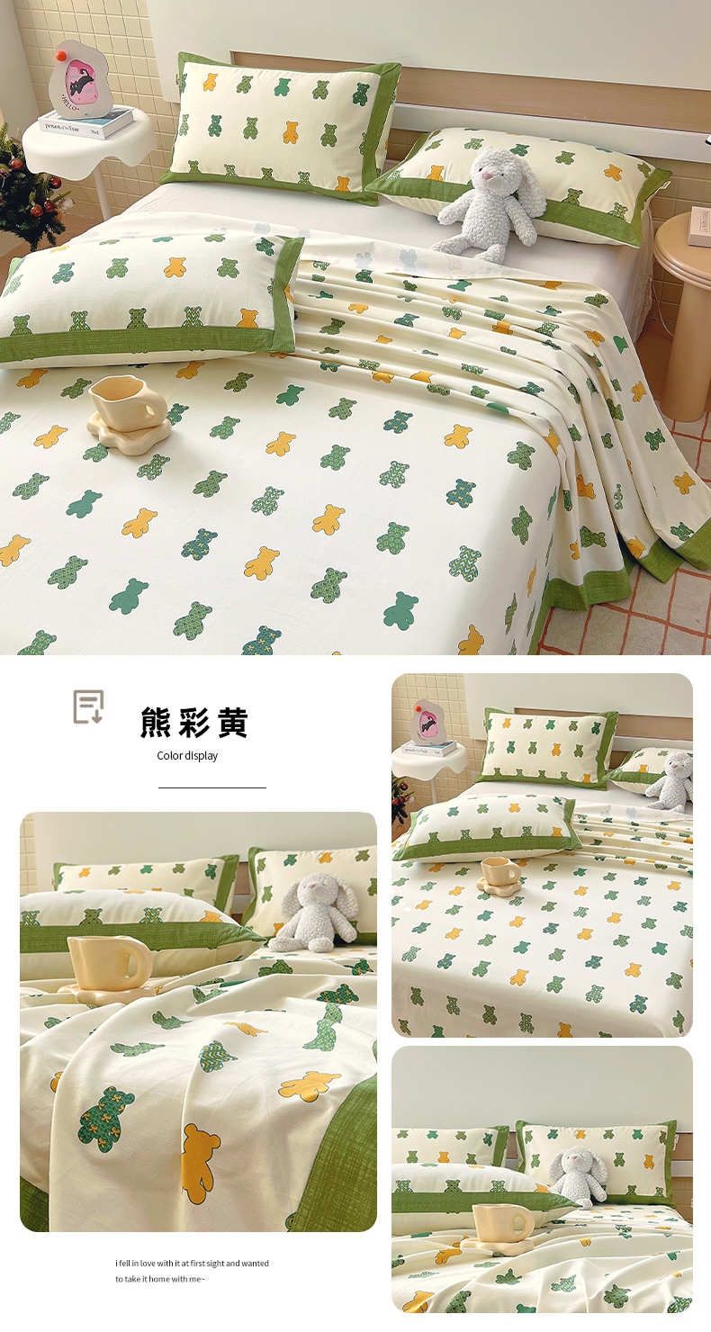 商品名称:(总)春皖家纺 2025新款A类全棉简约老粗纱布四件套风格一-工艺款单枕套