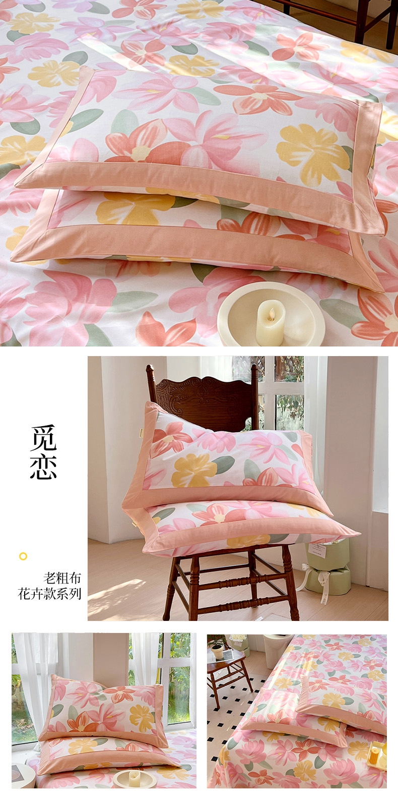 (总)春皖家纺 2025新款A类全棉简约老粗纱布四件套风格一-工艺款单枕套