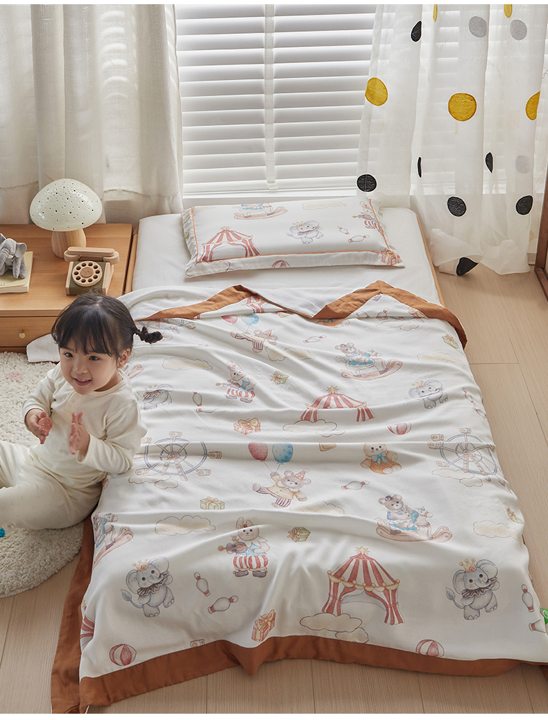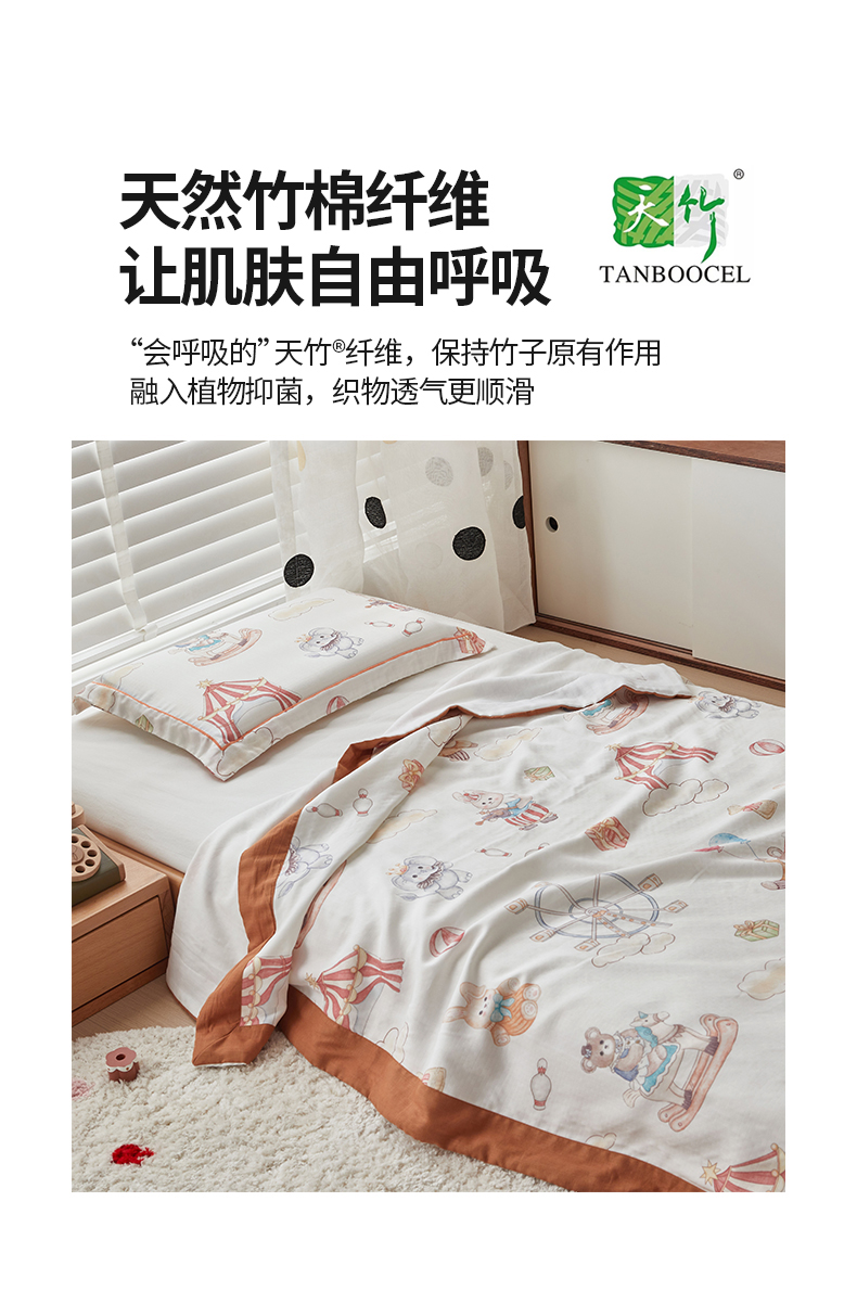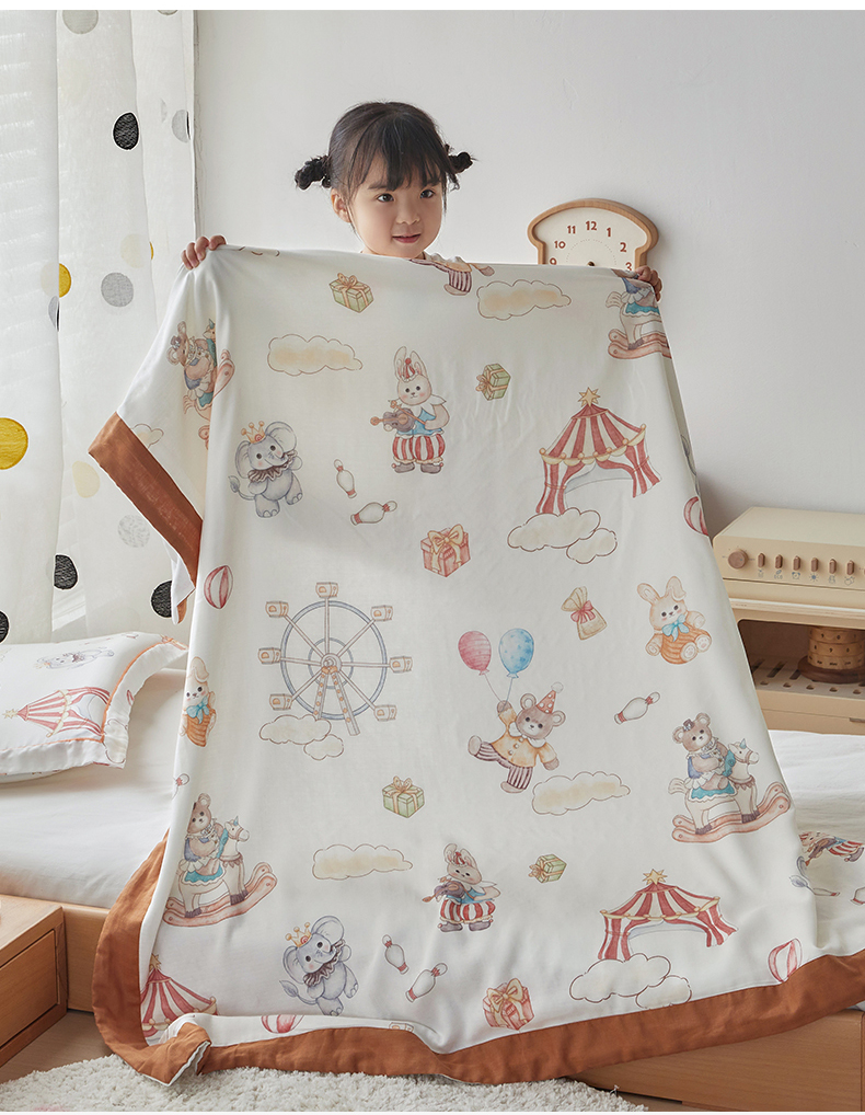 当前位置: 91家纺网 > 商品网购 > 毛毯休闲毯绒毯 > 毛毯 > 荷马之梦 2025新款天竹系列—A类原创印花天竹纤维四层纱儿童盖毯 马戏团