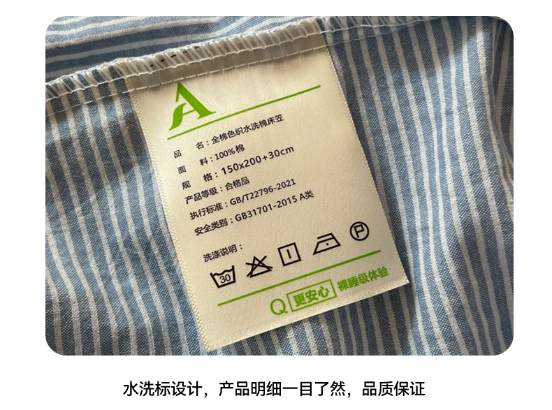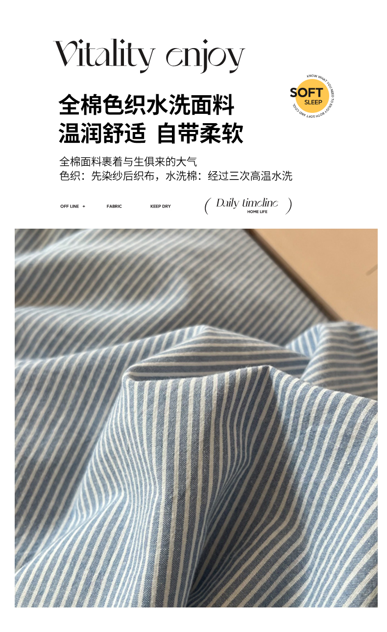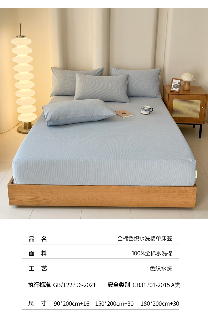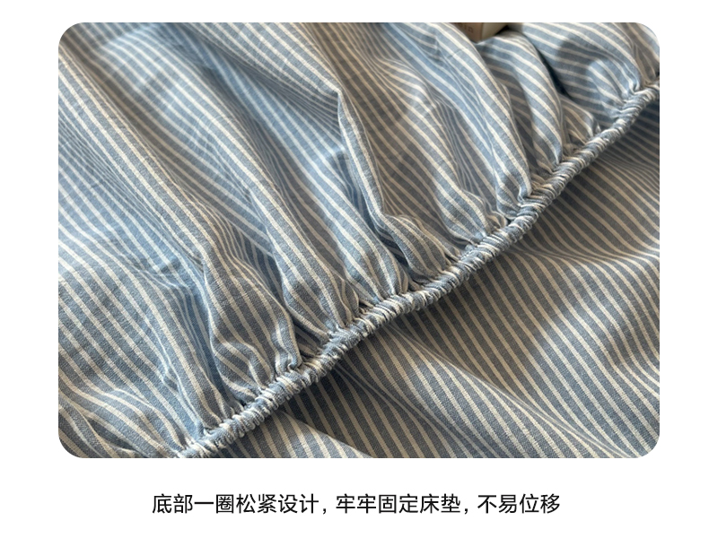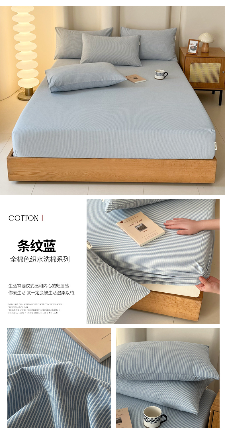 商品名称:恋之语 2025新款全棉纯棉色织床笠单品单床笠床笠单件 条纹蓝