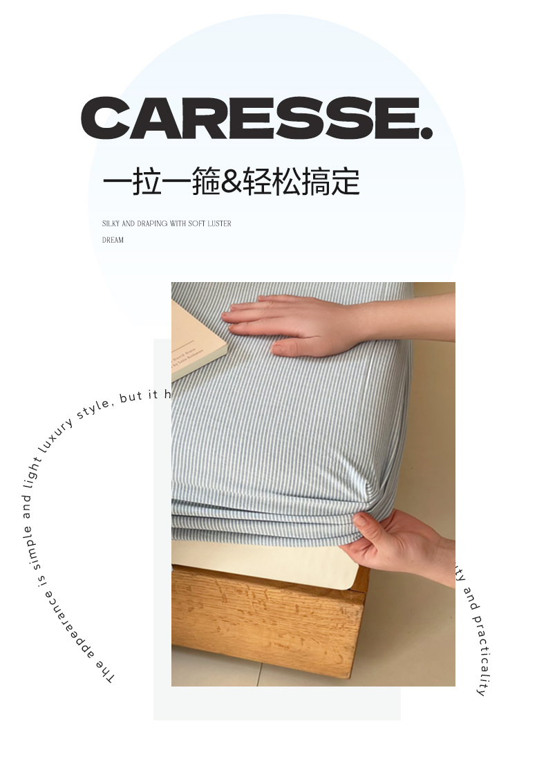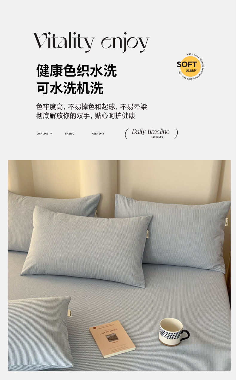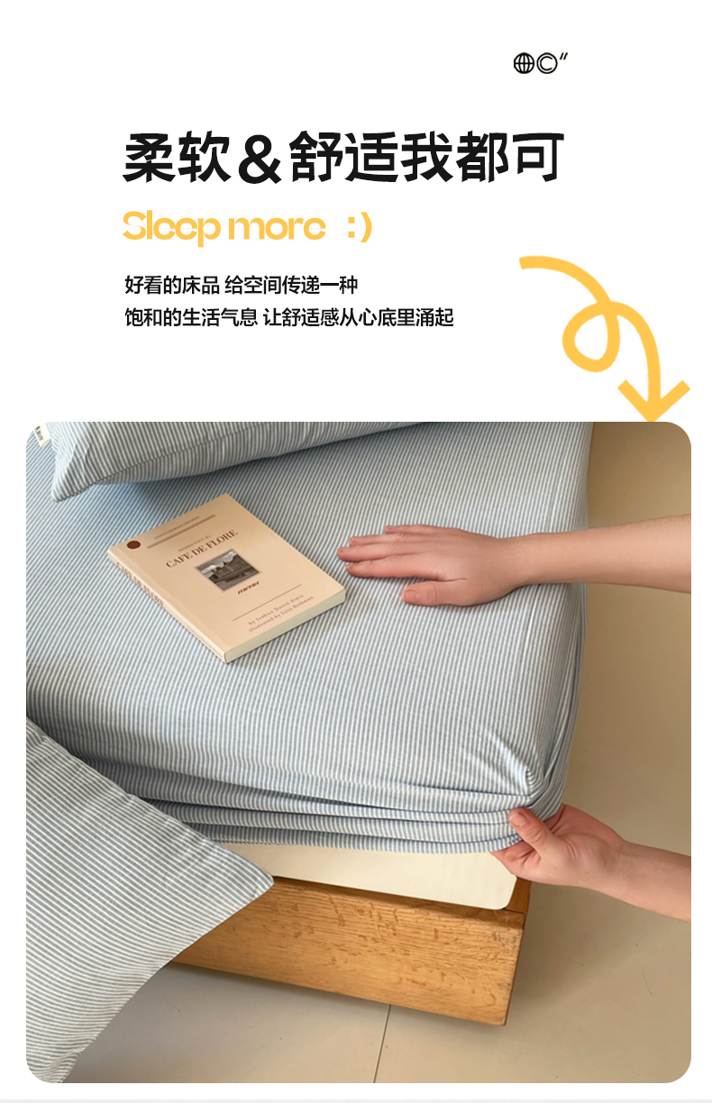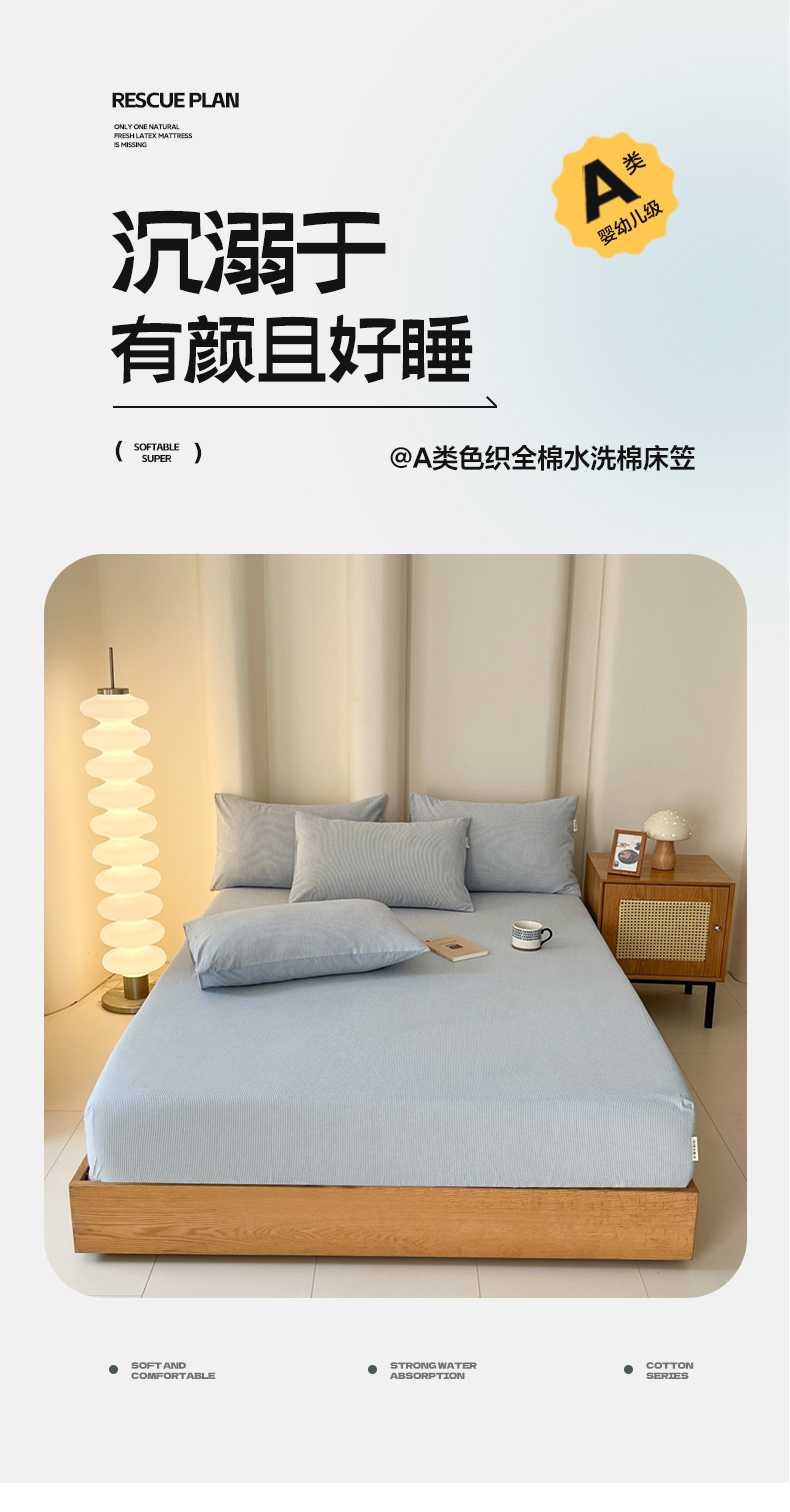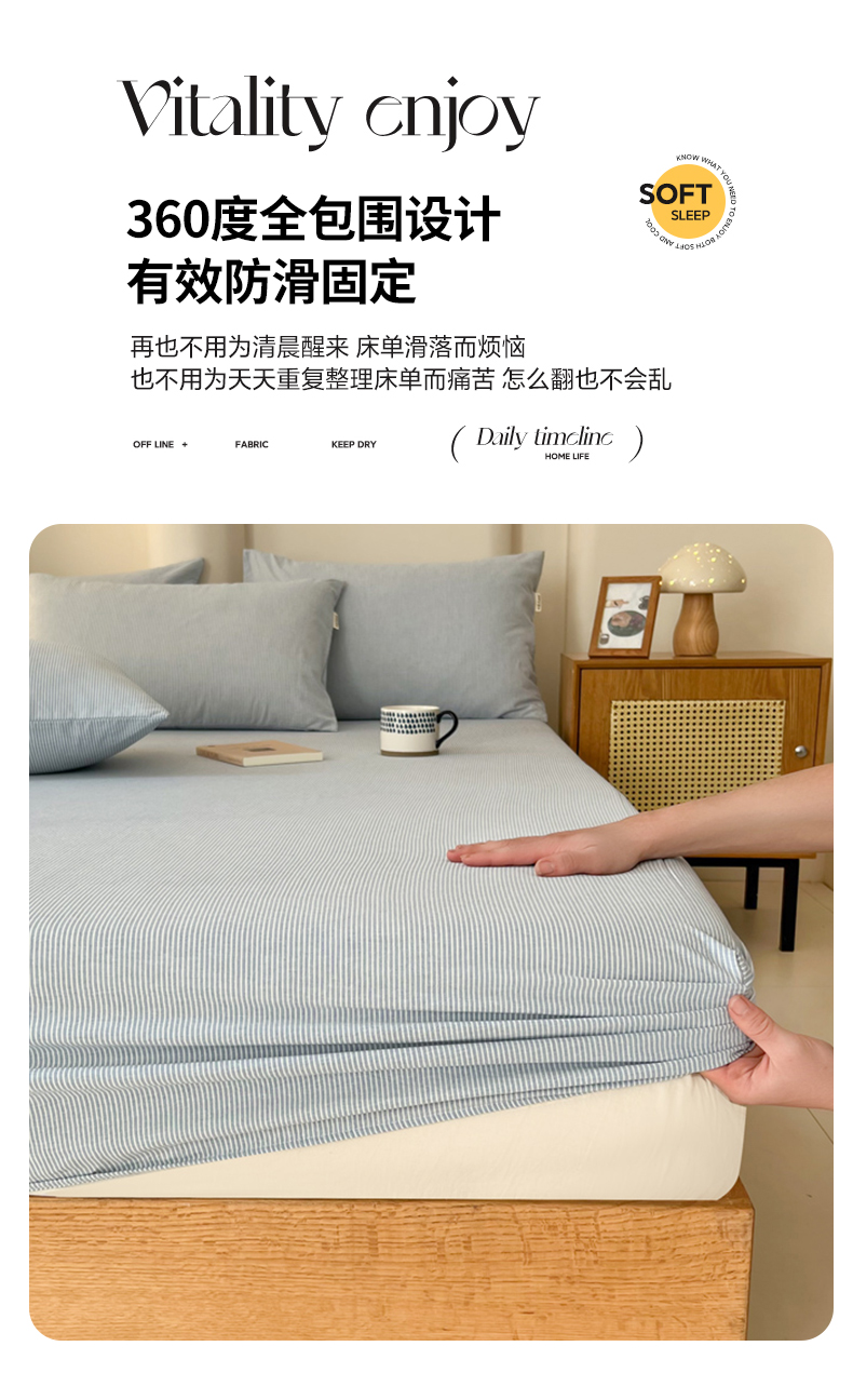 商品名称:恋之语 2025新款全棉纯棉色织床笠单品单床笠床笠单件 条纹蓝