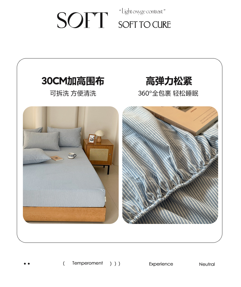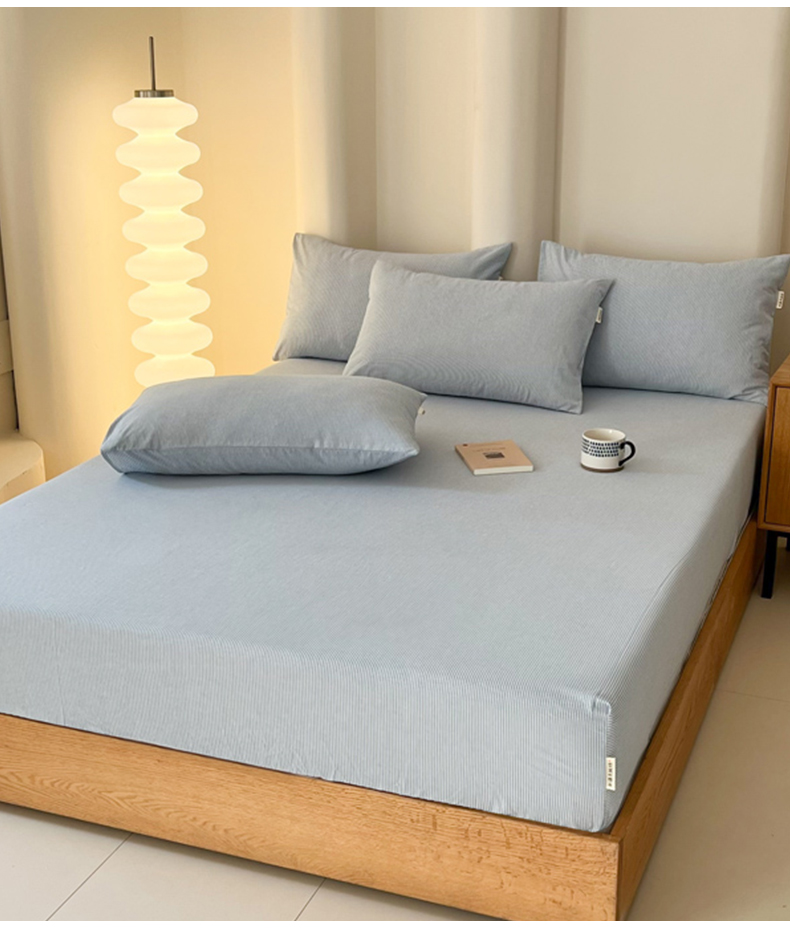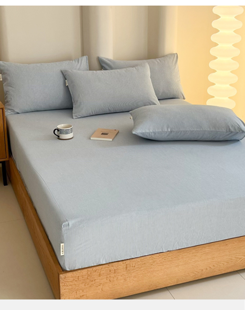 恋之语 2025新款全棉纯棉色织床笠单品单床笠床笠单件 条纹蓝