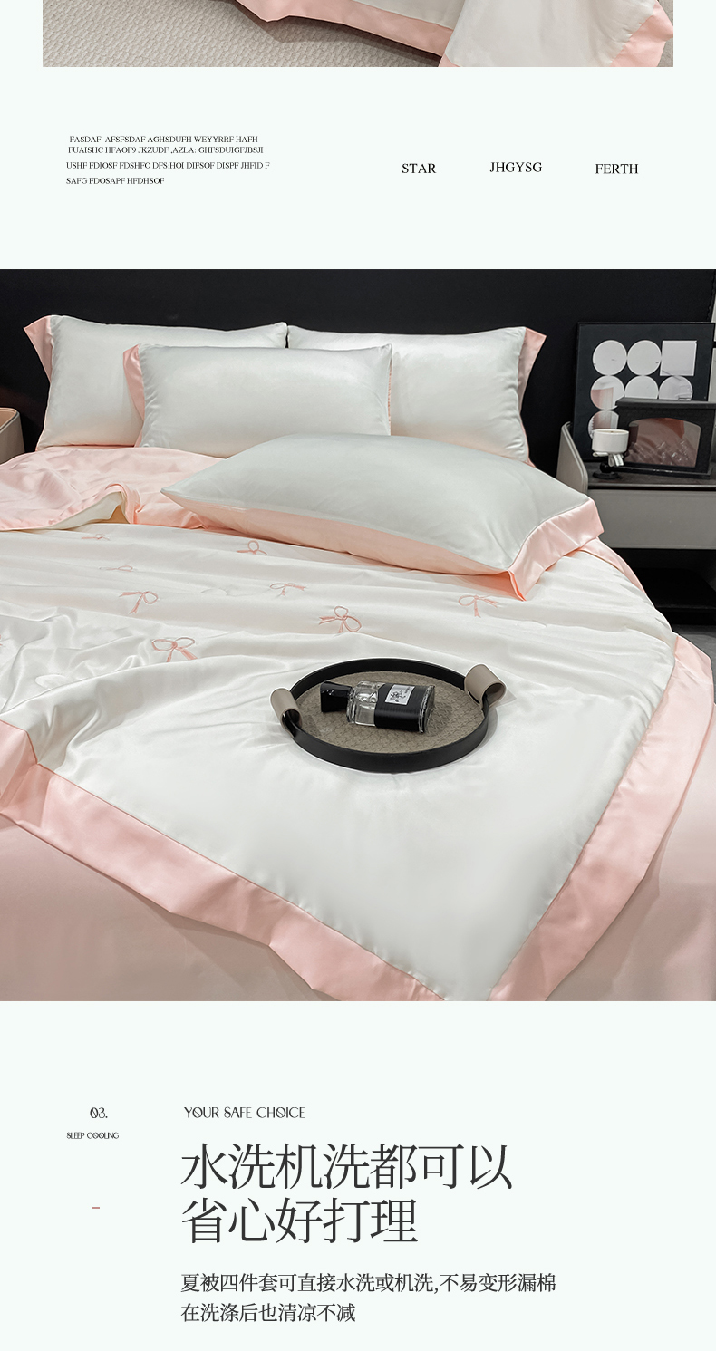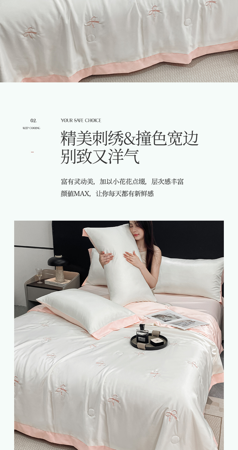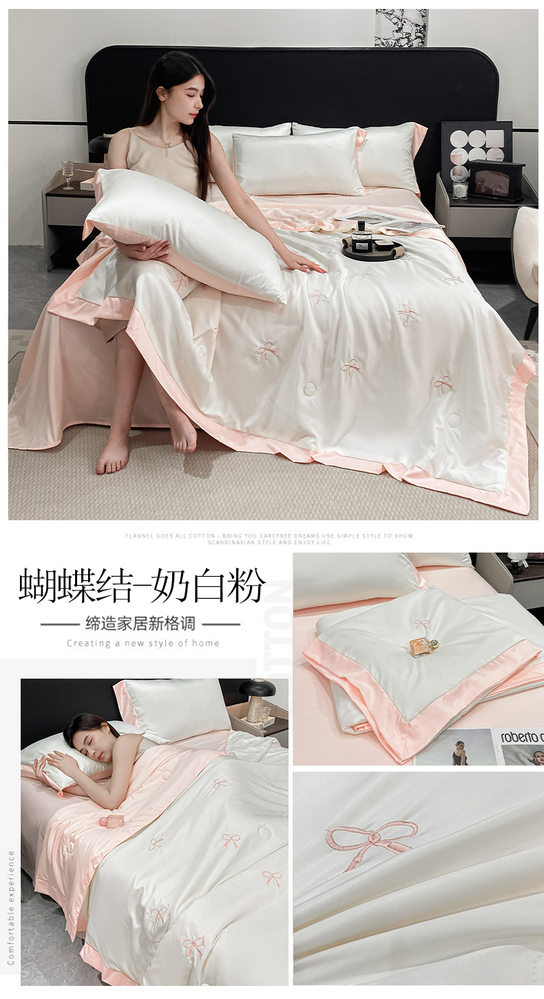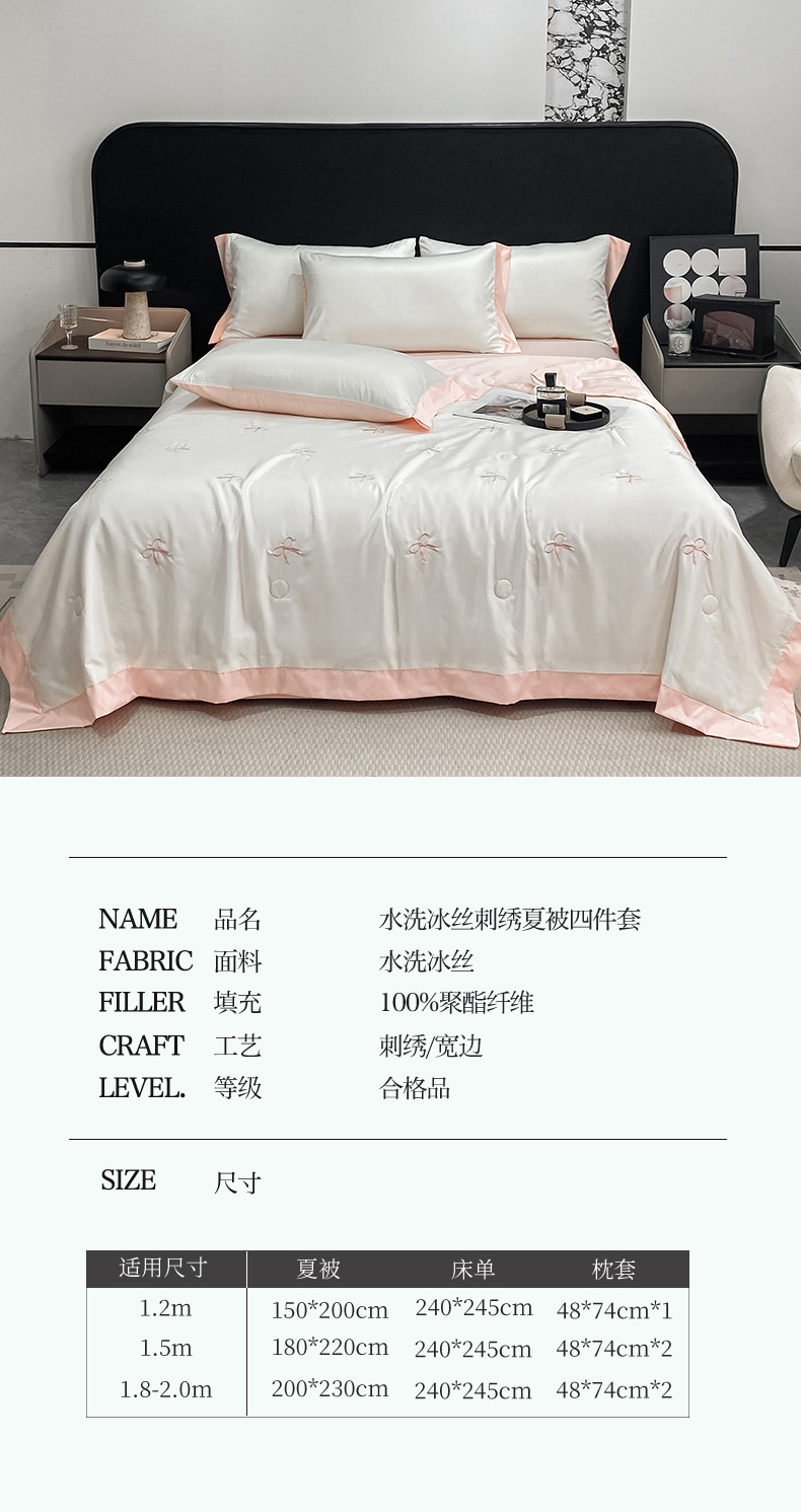 当前位置: 91家纺网 > 商品网购 > 床品套件 > 四件套 > 夏被四件套 > 牛牛家纺 2025新款水洗冰丝刺绣夏被四件套 蝴蝶结-奶白粉