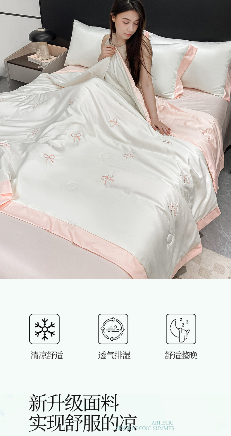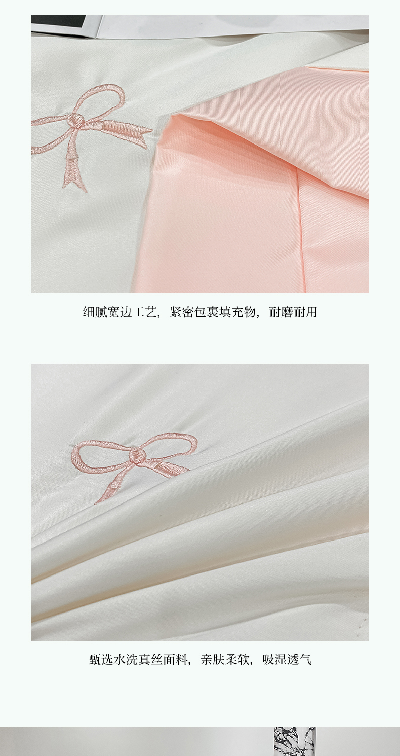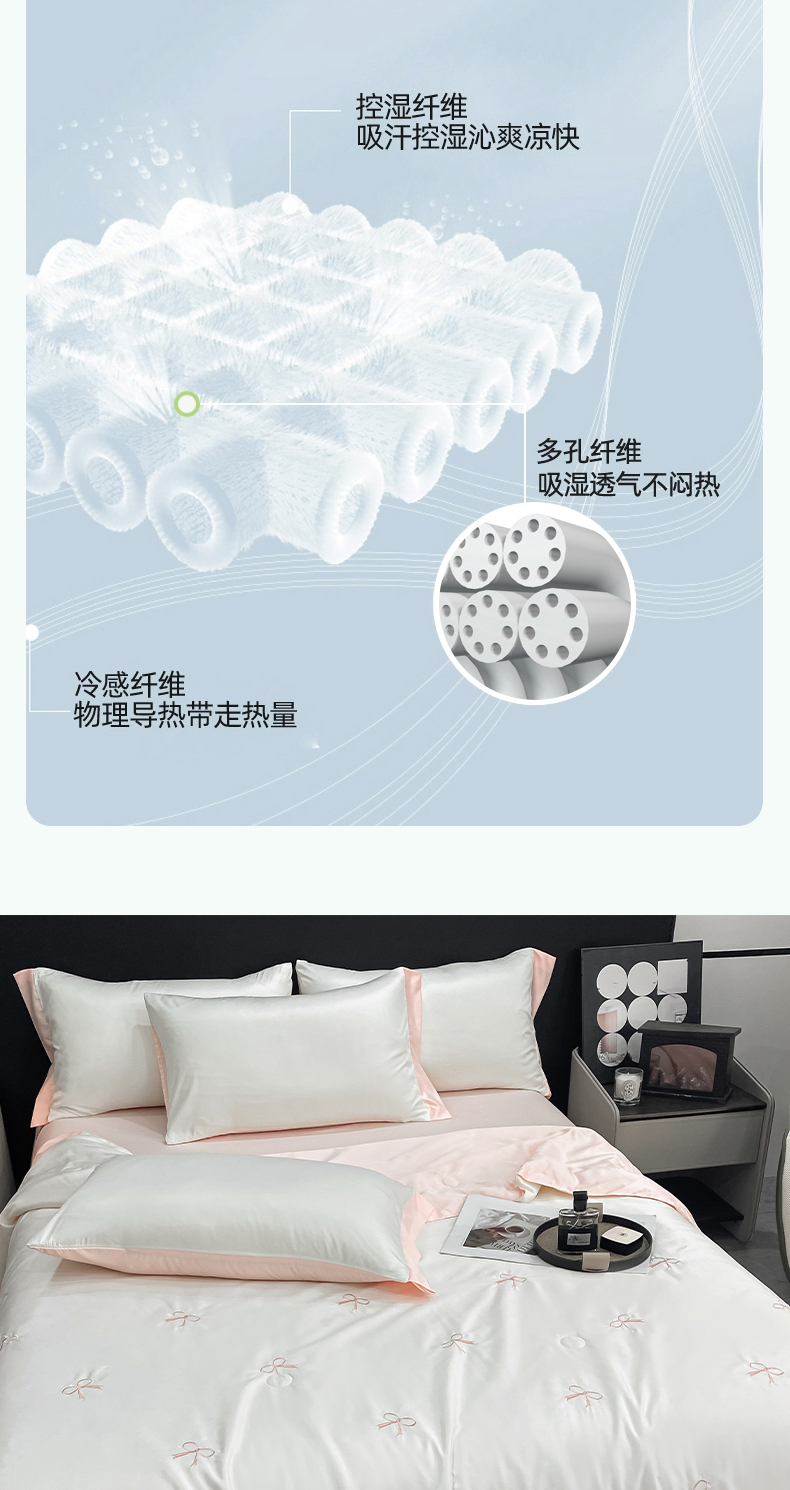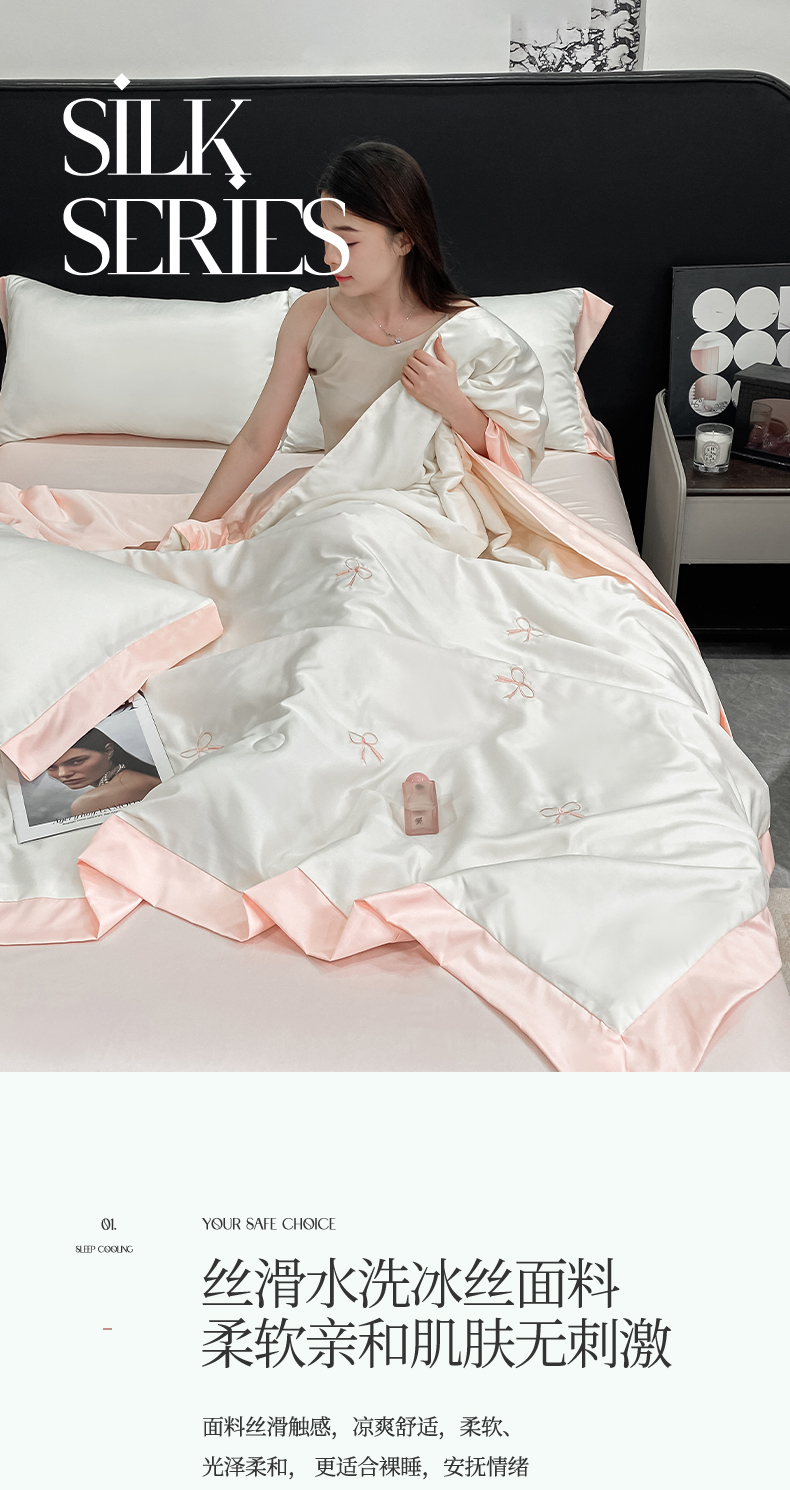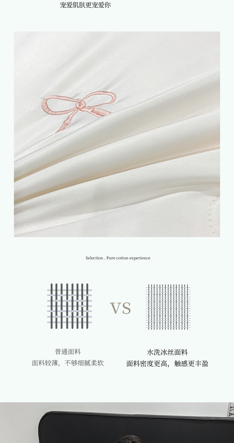 当前位置: 91家纺网 > 商品网购 > 床品套件 > 四件套 > 夏被四件套 > 牛牛家纺 2025新款水洗冰丝刺绣夏被四件套 蝴蝶结-奶白粉