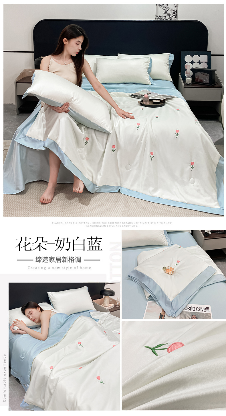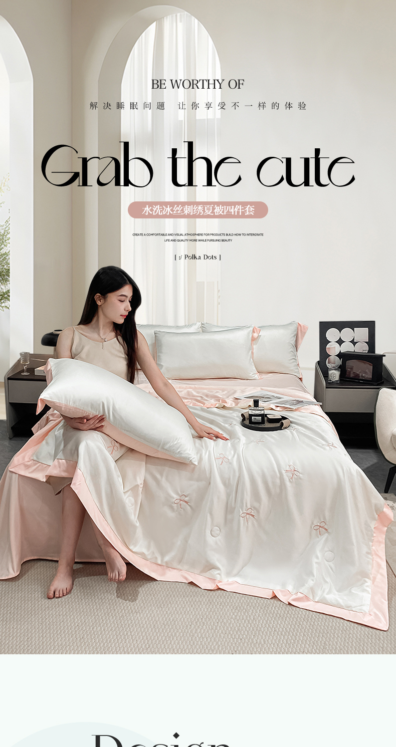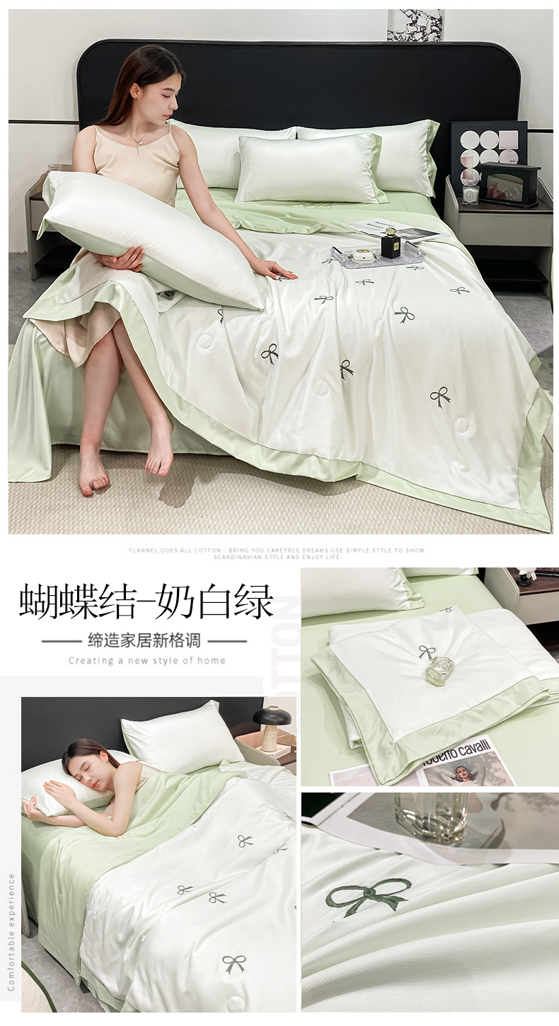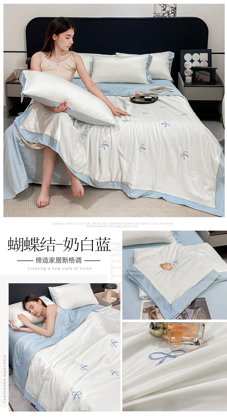 当前位置: 91家纺网 > 商品网购 > 床品套件 > 四件套 > 夏被四件套 > 牛牛家纺 2025新款水洗冰丝刺绣夏被四件套 蝴蝶结-奶白粉
