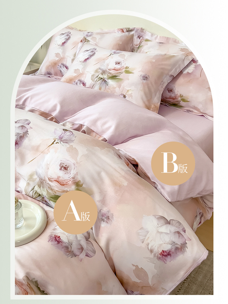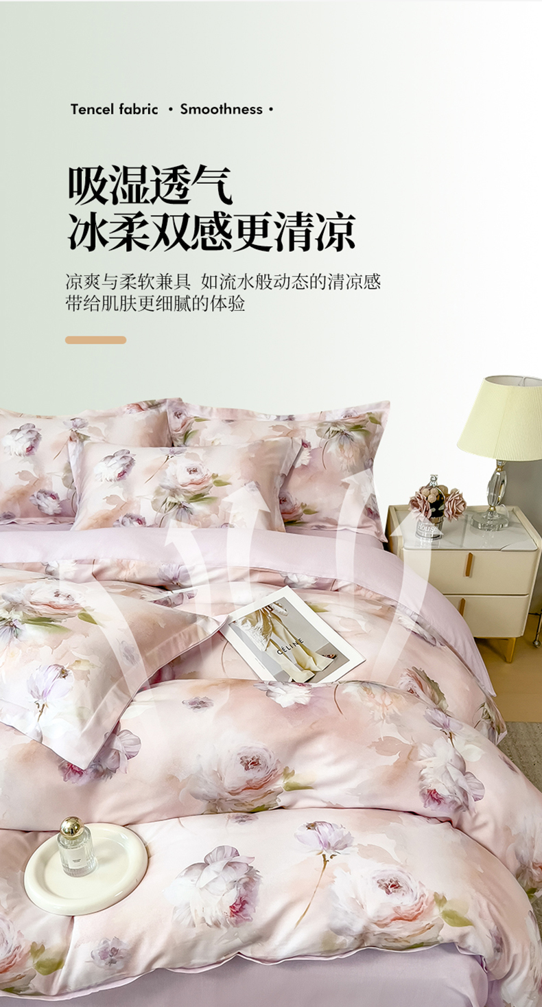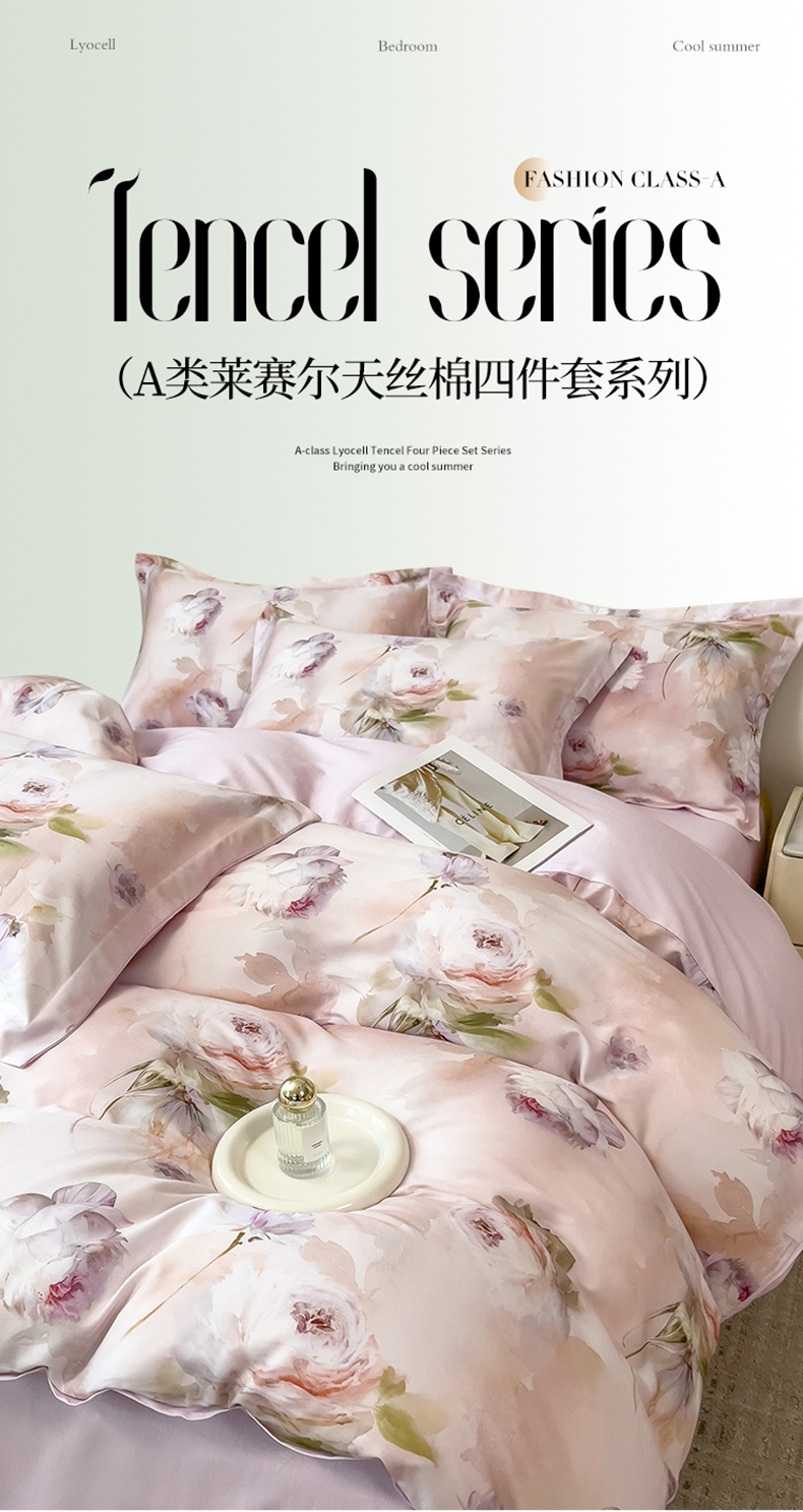 芃成家纺 2025新款A类莱赛尔天丝棉四件套 古典玫瑰