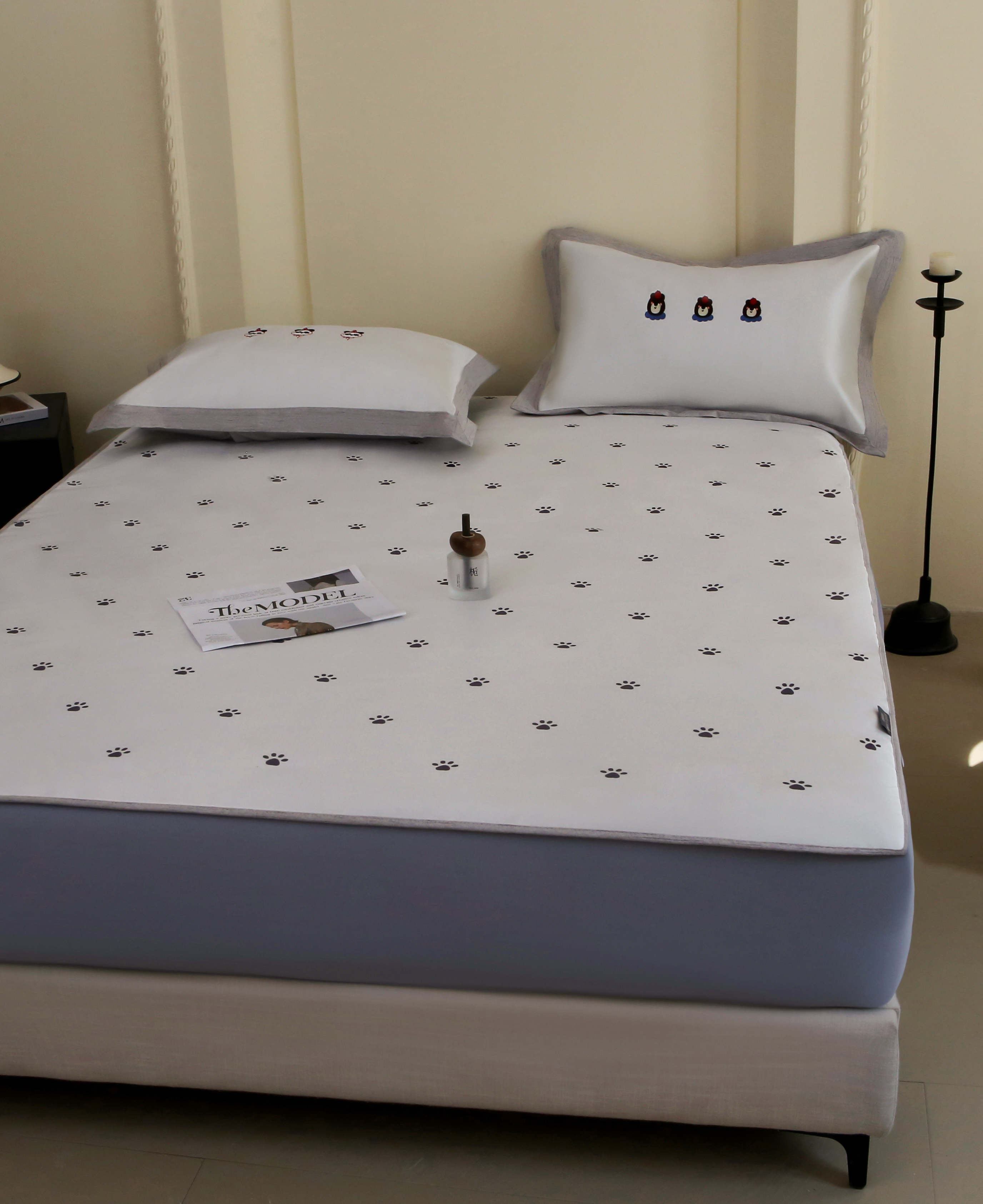 (总)木希2025春夏新款可水洗冰丝席幻彩刺绣床笠系列-场景一,爱心刺绣,格调爱心,脚丫刺绣,森林小熊,小怪兽,小秋秋乐园,熊猫乐园