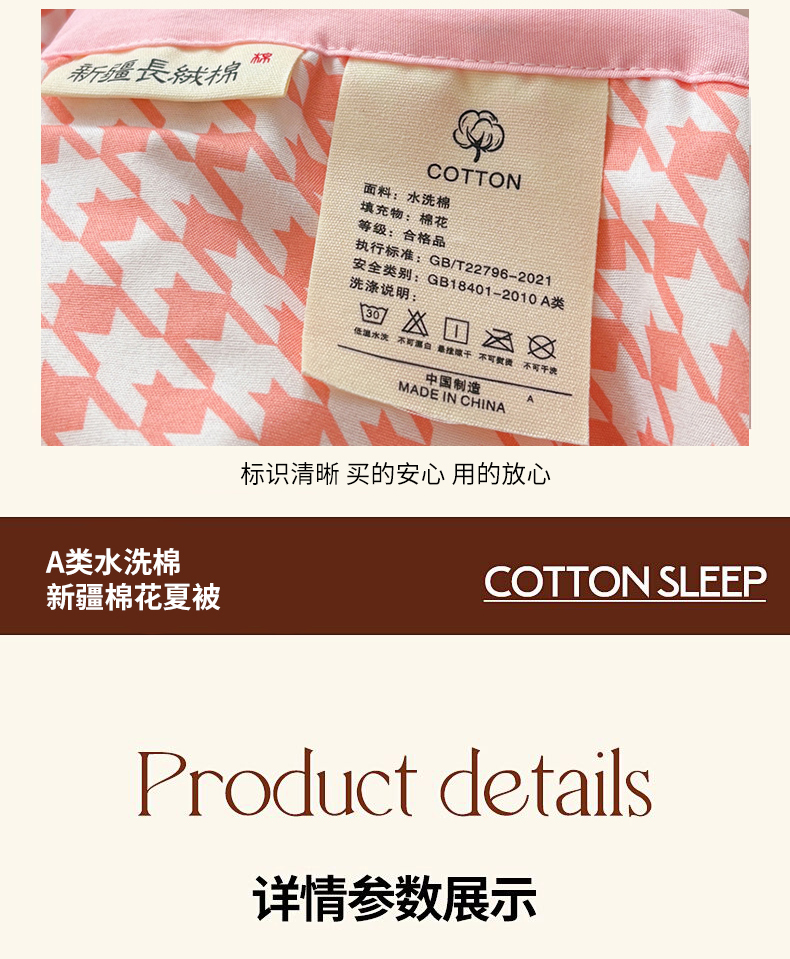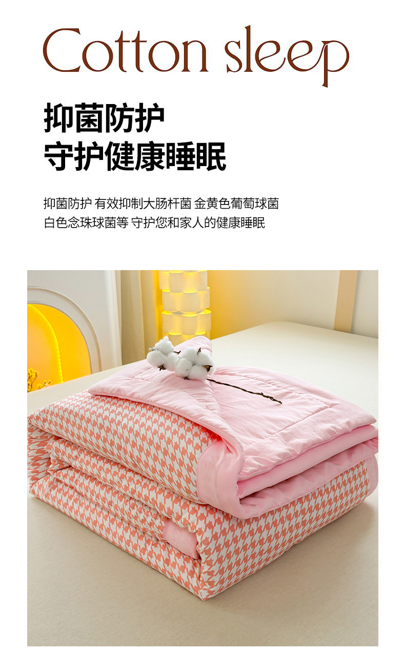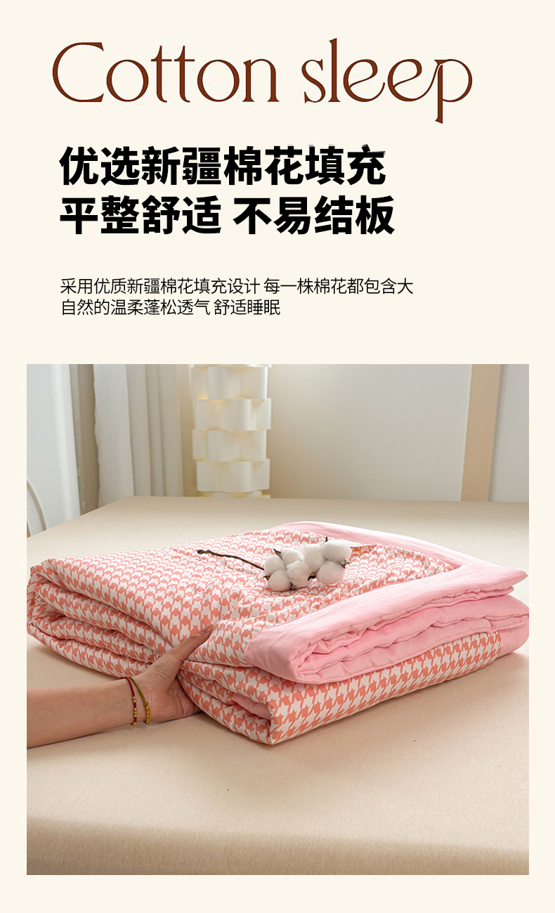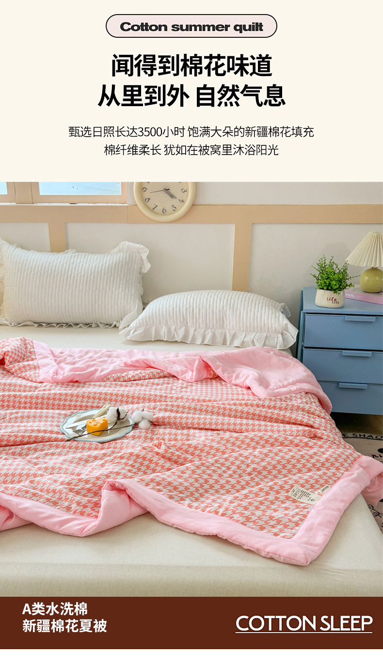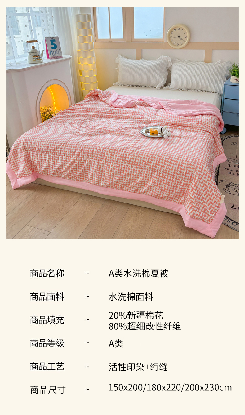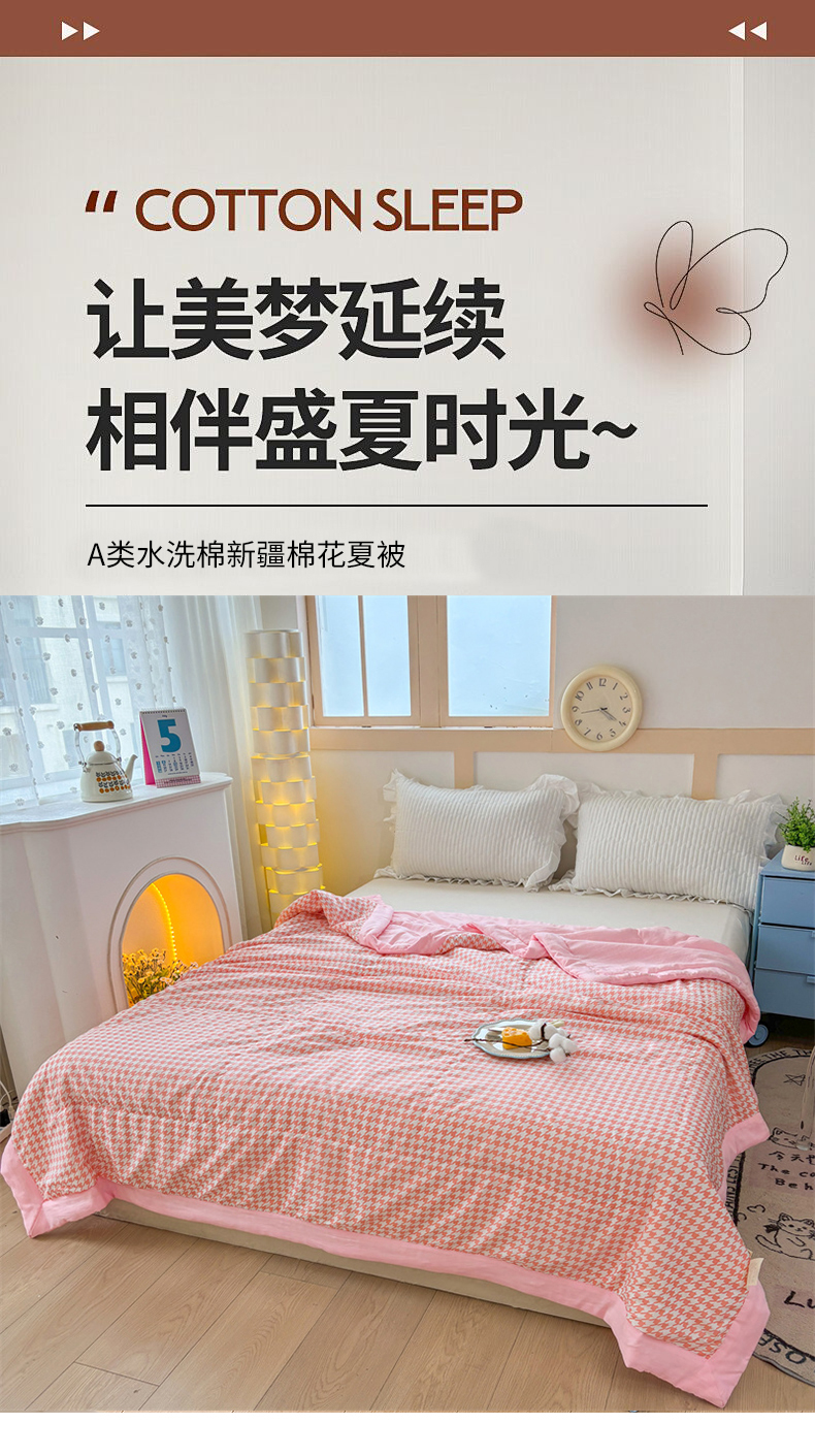 商品名称:默忆 2025新款水洗棉新疆棉花夏被水洗棉夏凉被空调被棉花被 粉色千鸟格