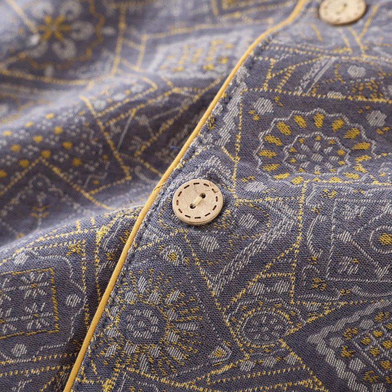 (总)洛兰沙家居馆 2025新款【松木】男士长袖长裤套装日系简约家居服全棉双层色织提花棉纱款,松木-灰色