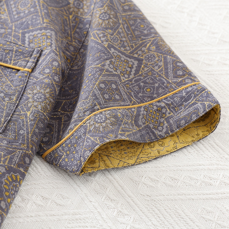 商品名称:(总)洛兰沙家居馆【只代发】【只代发】2025新款男款休闲色织纯棉双层纱布睡衣夏季薄款长袖短袖宽松家居服外穿