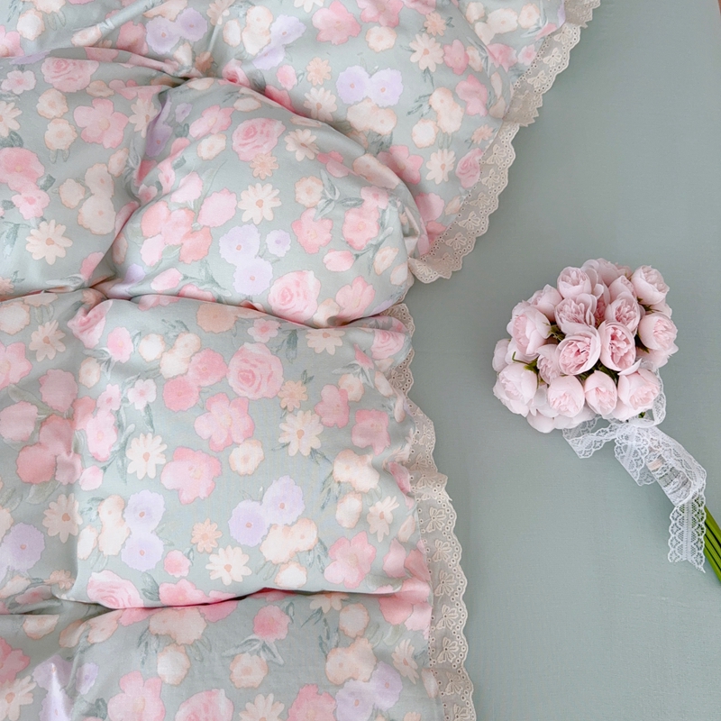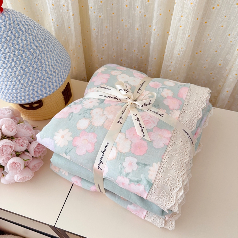于果 2025新款全棉双层纱花边款 手捧玫瑰