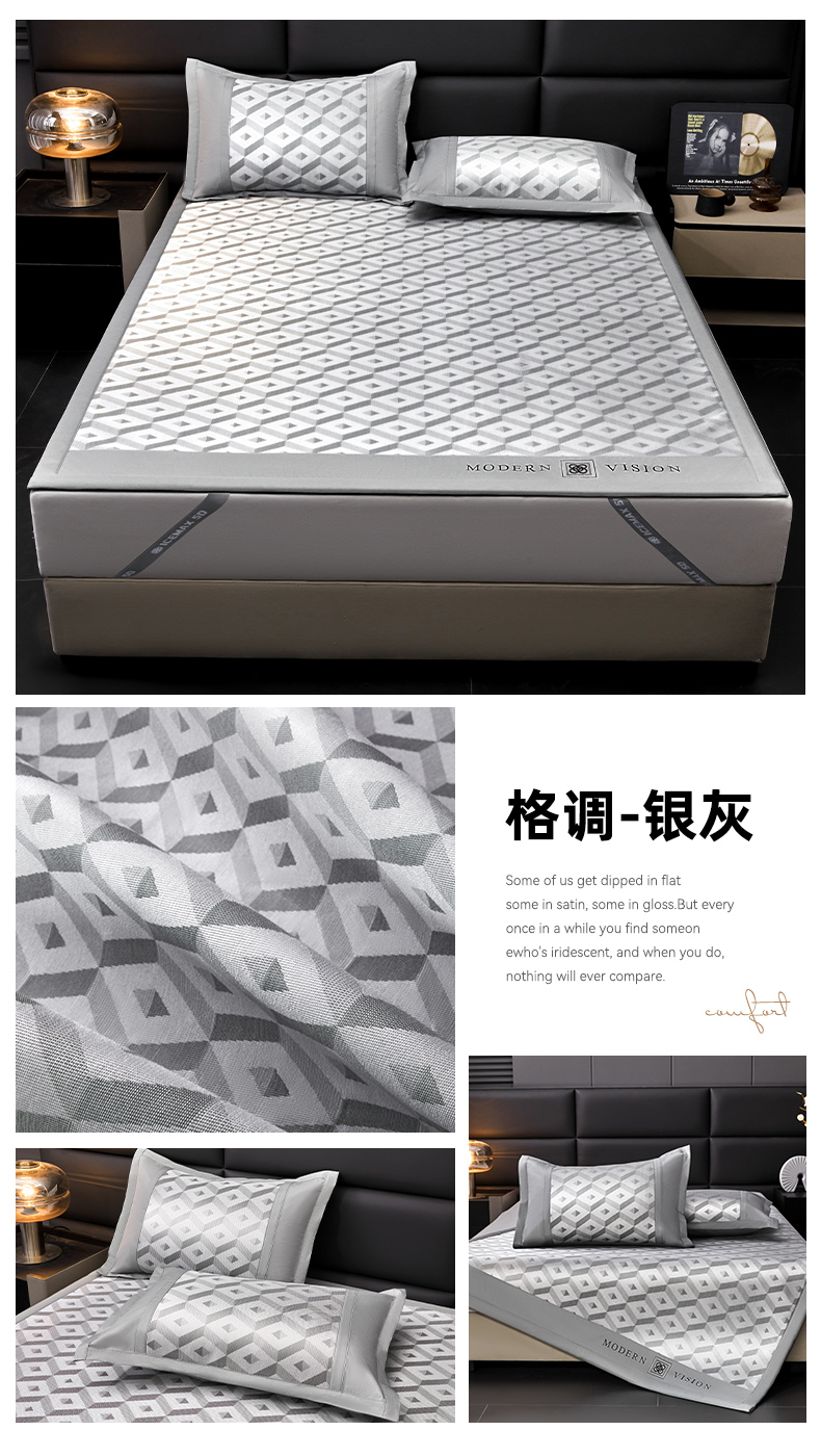 当前位置: 91家纺网 > 商品网购 > 床上用品 > 凉席 > 凉席套件 > 全季家居 2025新款5A抗菌3D立体冰柔凉感冰丝席 格调-银灰 床席款