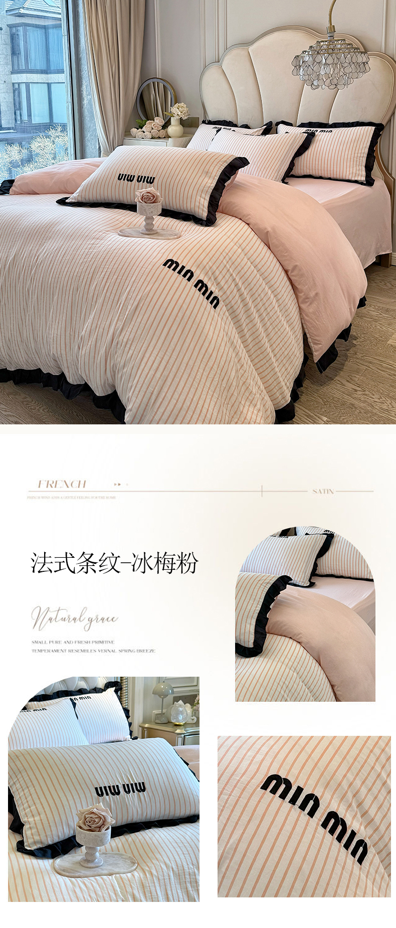 当前位置: 91家纺网 > 商品网购 > 床品套件 > 四件套 > 其它四件套 > 千希家纺2025新款法式小香风四件套 法式条纹-冰梅粉